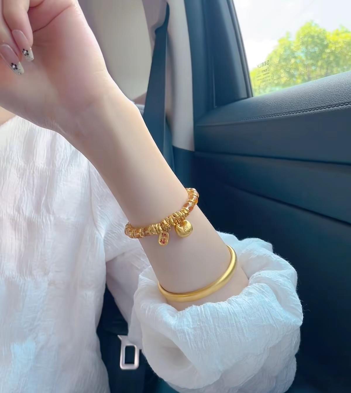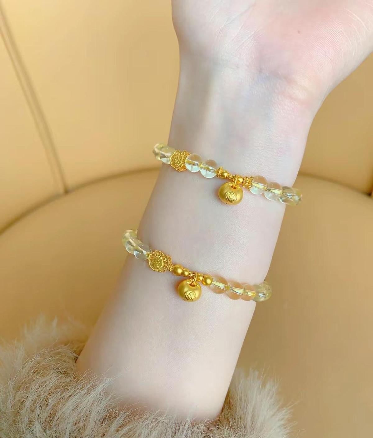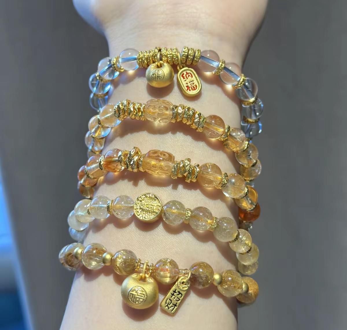 黄金配水晶,不靠开光,靠实打实的戴得住。 黄水晶不烫手,真货就是凉得稳,假货一摸