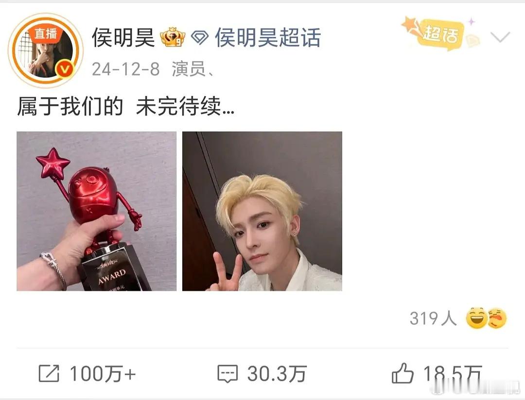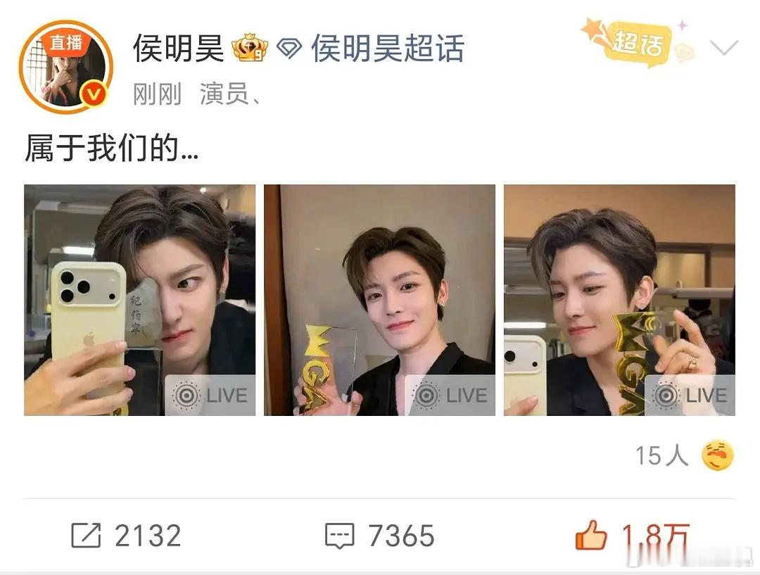 侯明昊,真的是很事业型,很爱粉丝的一款,走到哪里都要把粉丝带着,有啥事先和他粉丝报备