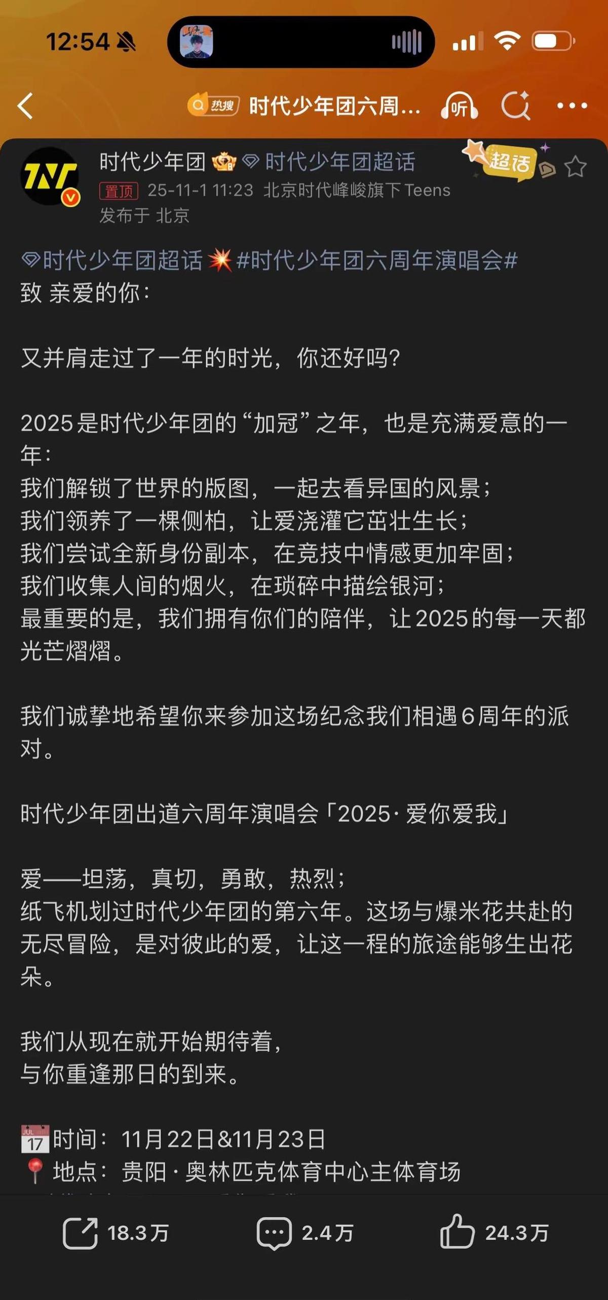 时代少年团六周年演唱会官宣了,上海梅赛德斯奔驰文化中心,八月见。 爆米花们连夜刷屏“周年见”,热搜秒破五亿。 不是粉丝疯,是六年真熬出味道了。 马嘉祺练到凌晨三点,舞鞋磨穿两双。 别的团在复刻经典,他们敢掏没播过的歌。 门票还没开,黄牛就开始摸裤兜, 官方一嗓子:别信! 蹲官网。 周边还没上架,代购已囤了三个仓库。 但你知道最狠的是啥吗? 他们从不说“我们多努力”, 可你一进现场,光是呼吸都带着劲儿。 这届少年,不靠热搜活着。 他们靠舞台,把时间,唱成了回声。