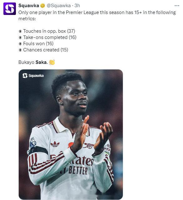 即便如此,萨卡的状态仍然没有达到100%。一旦他完全进入状态,人们将会看到他贡献的数据进一步提升金秋观赛季 阿森纳著名教授
