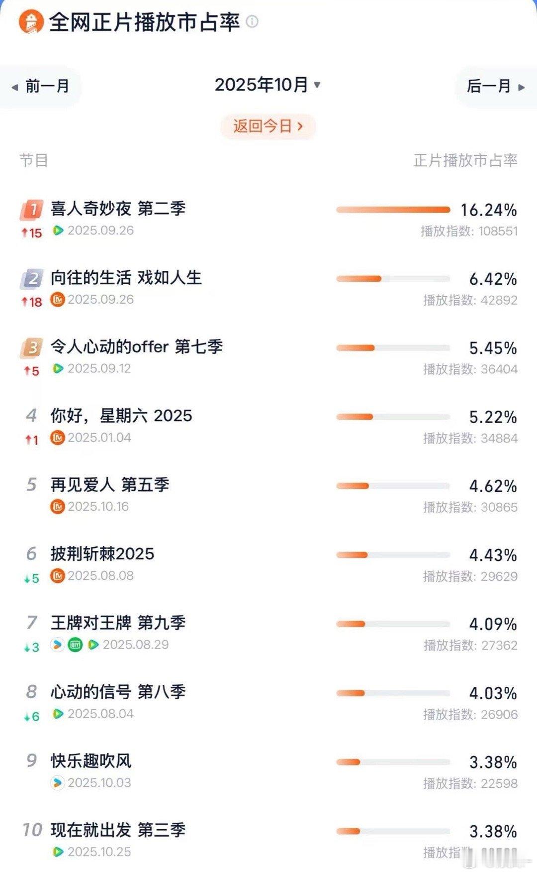 10月份综艺收视率排名《喜人2》断档领先,为啥没有花少,花少云合好像都断层了啊![思考]