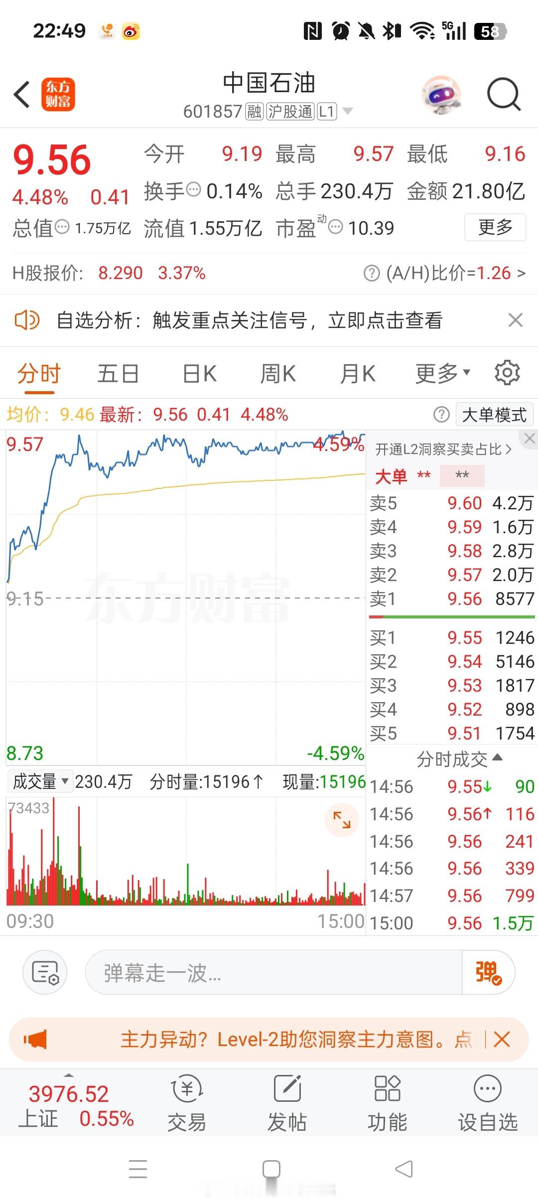今天大盘可以说是:力拔山兮气盖世!午后直接拉升大涨,可惜量能不够。