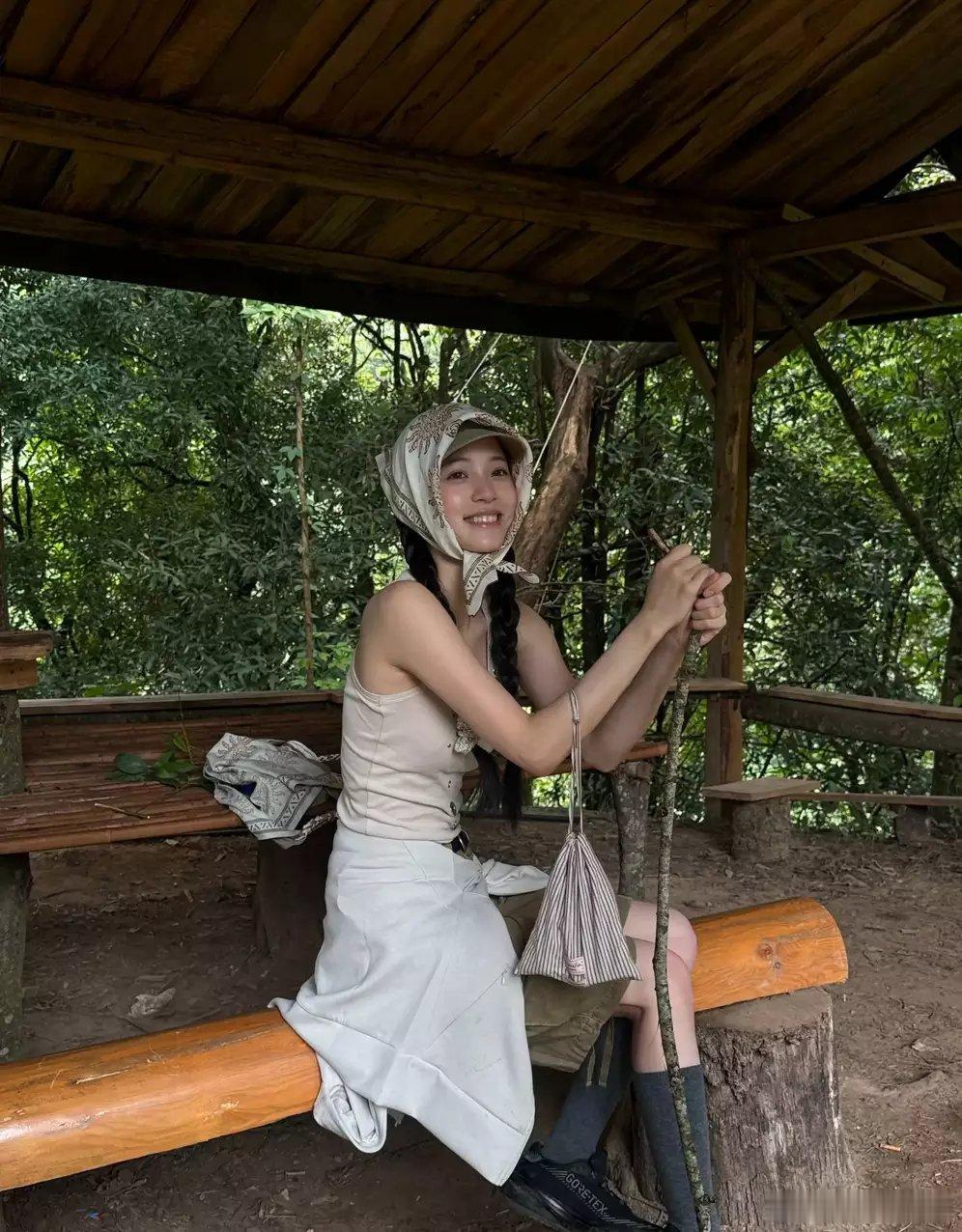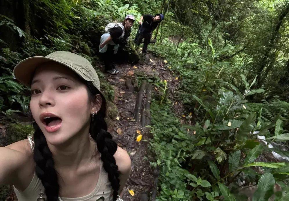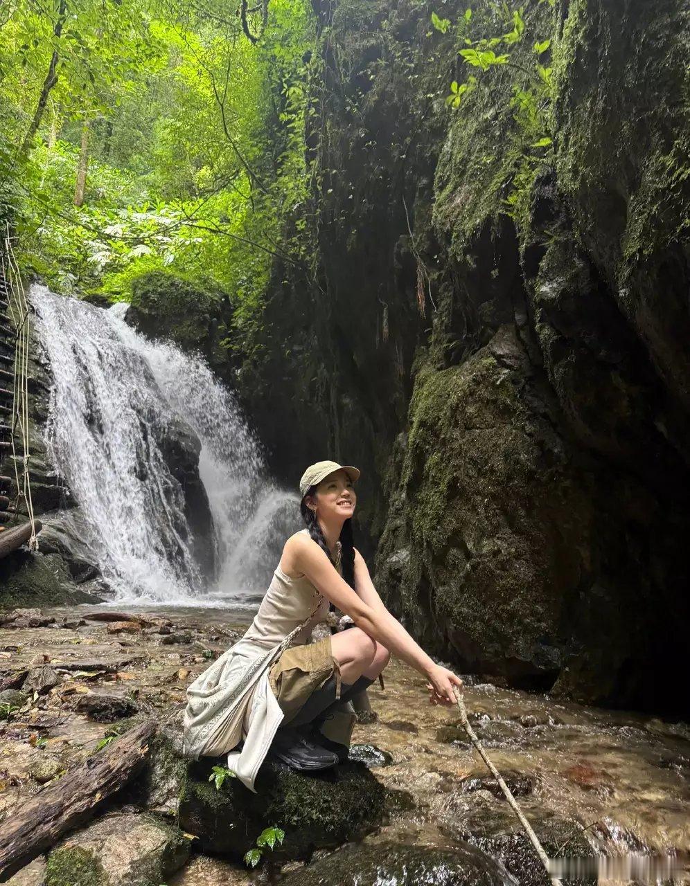 分享娱乐[超话]分享娱乐 欧阳娜娜去雨林徒步元气满满!穿吊带上衣秒变运动系少女