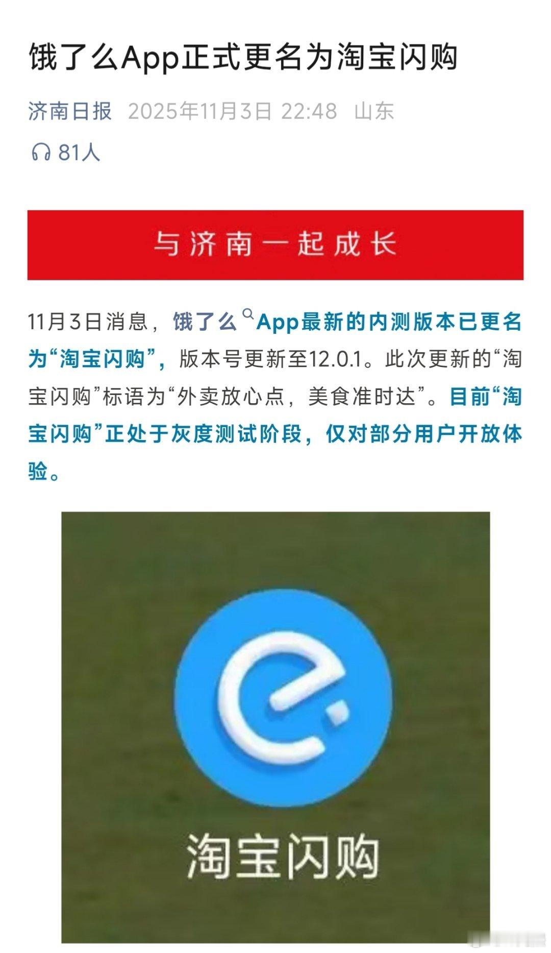 饿了么内测版本更名为“淘宝闪购”