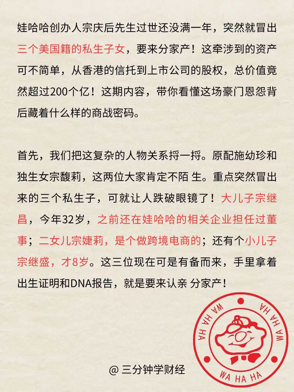 这期我们聊聊娃哈哈的这场豪门恩怨,看懂家族企业的传承陷阱。