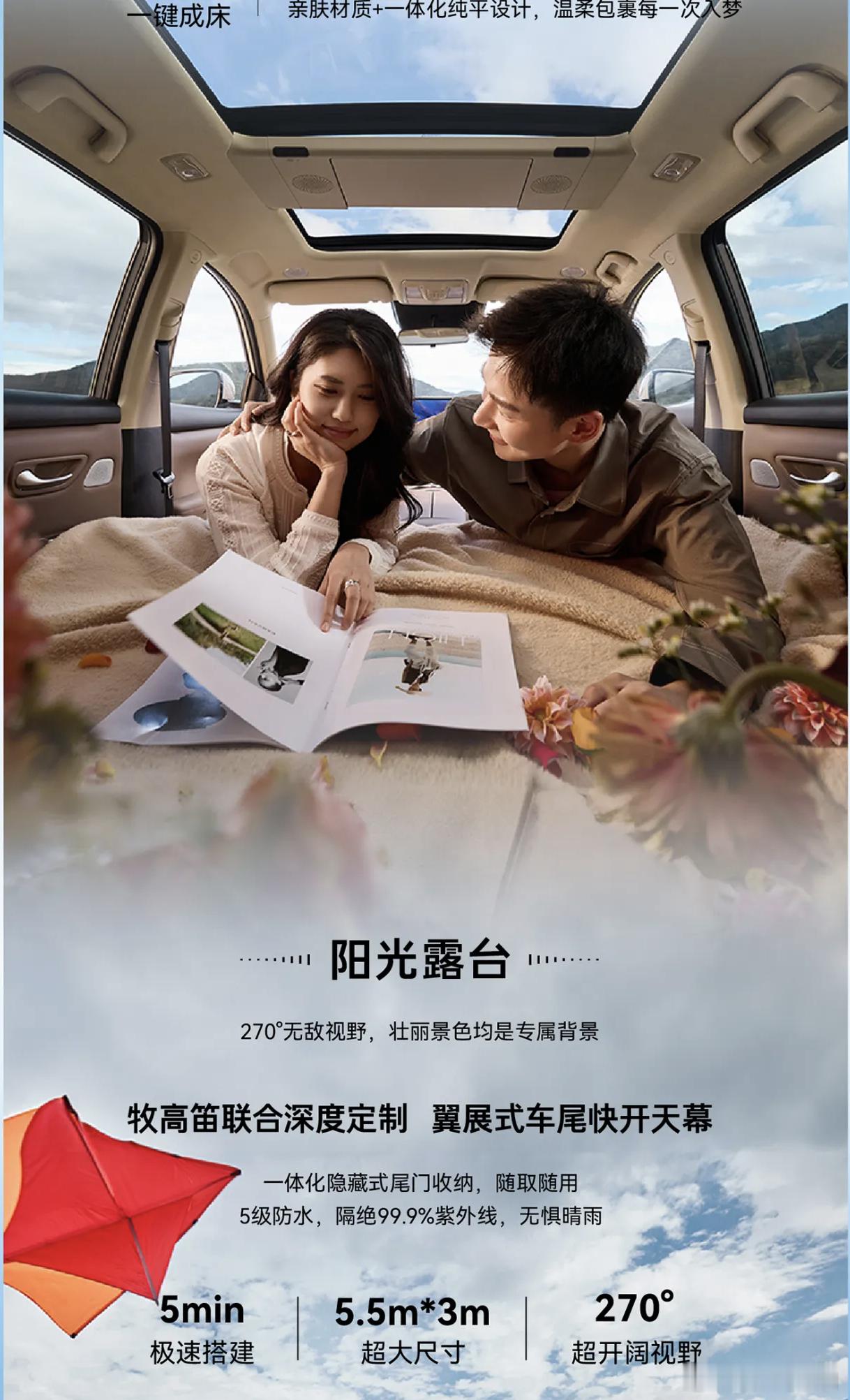 · 豪华主卧:二排纯平放倒秒变1.93m大床,带一体化充气床垫