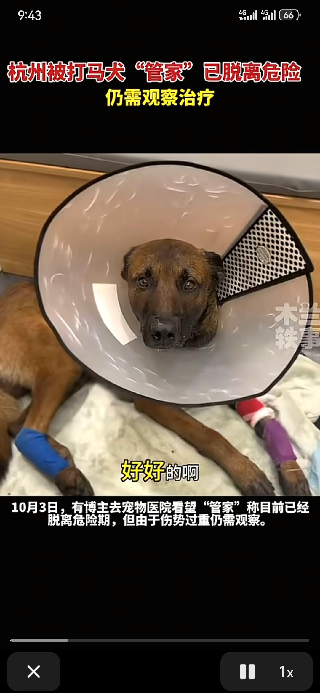 杭州被打马犬现状! 前段时间因为马犬咬柯基耳朵以示警告,结果被柯基主人打的嗷嗷直叫 后续,这起事件也已经被立案了,经过一些天的治疗,马犬现在已经恢复的很好了