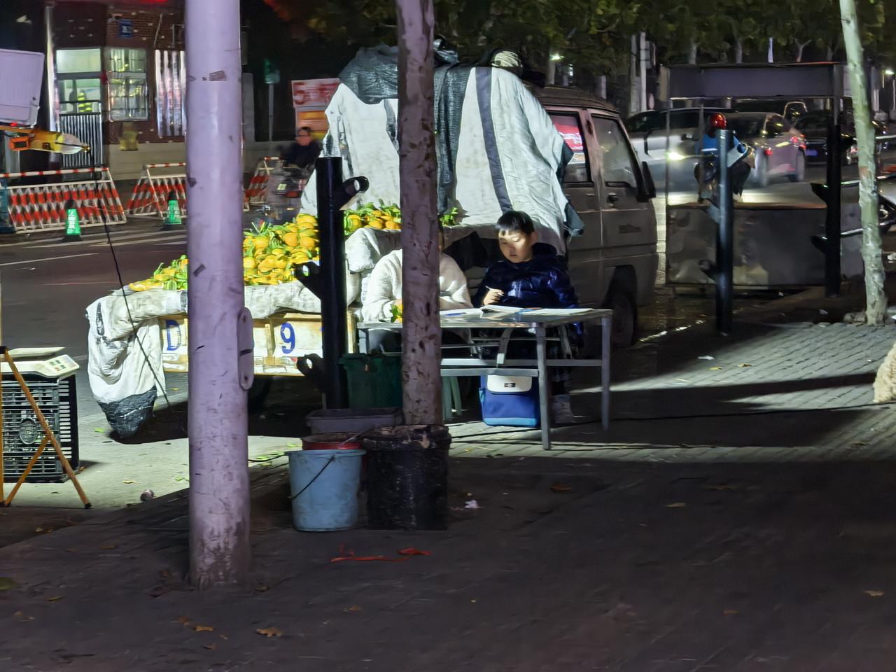 城市发现①:寒夜卖桔辅导儿,辛苦的妈妈!昨夜8点多,寒冷的路边,一盏太阳能移动灯照在一对母子身上,小男孩在写着作业,妈妈在一货车旁卖着桔子还不时看着儿子写的作业。母子俩还不停讨论着作业题!城市路边总有那么一批坚强的生存者起早贪黑,含辛茹苦!