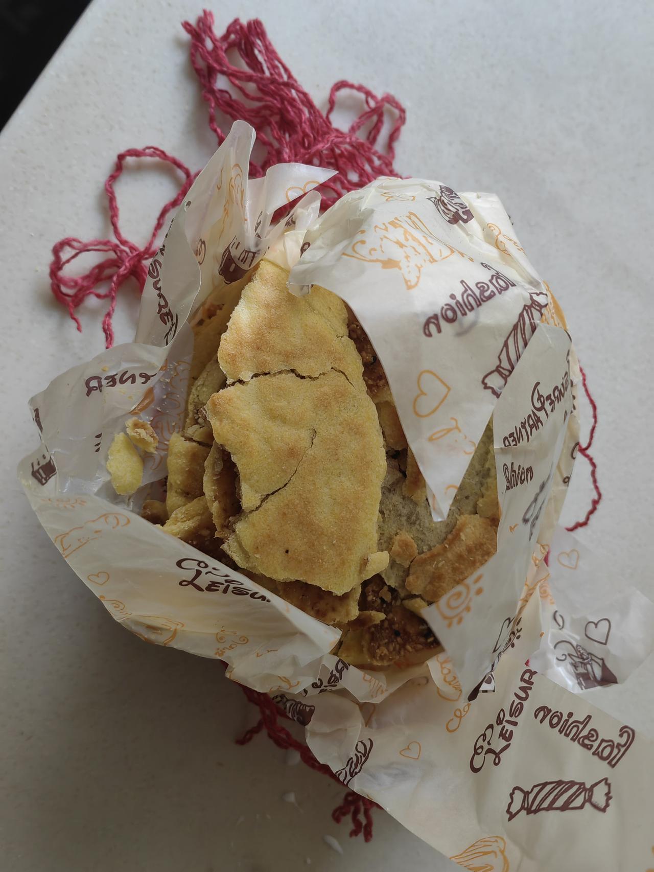 这是领导在中秋节特意给我的一份月饼,应该是山西空腔红糖月饼,我曾经在山西吃过这种月饼,不像普通月饼那样甜,有嚼头,尤其是新做的月饼,非常好吃。今天打开这包领导送的月饼,虽然看不出月饼的样子,但这也是一份心意,必须感激。