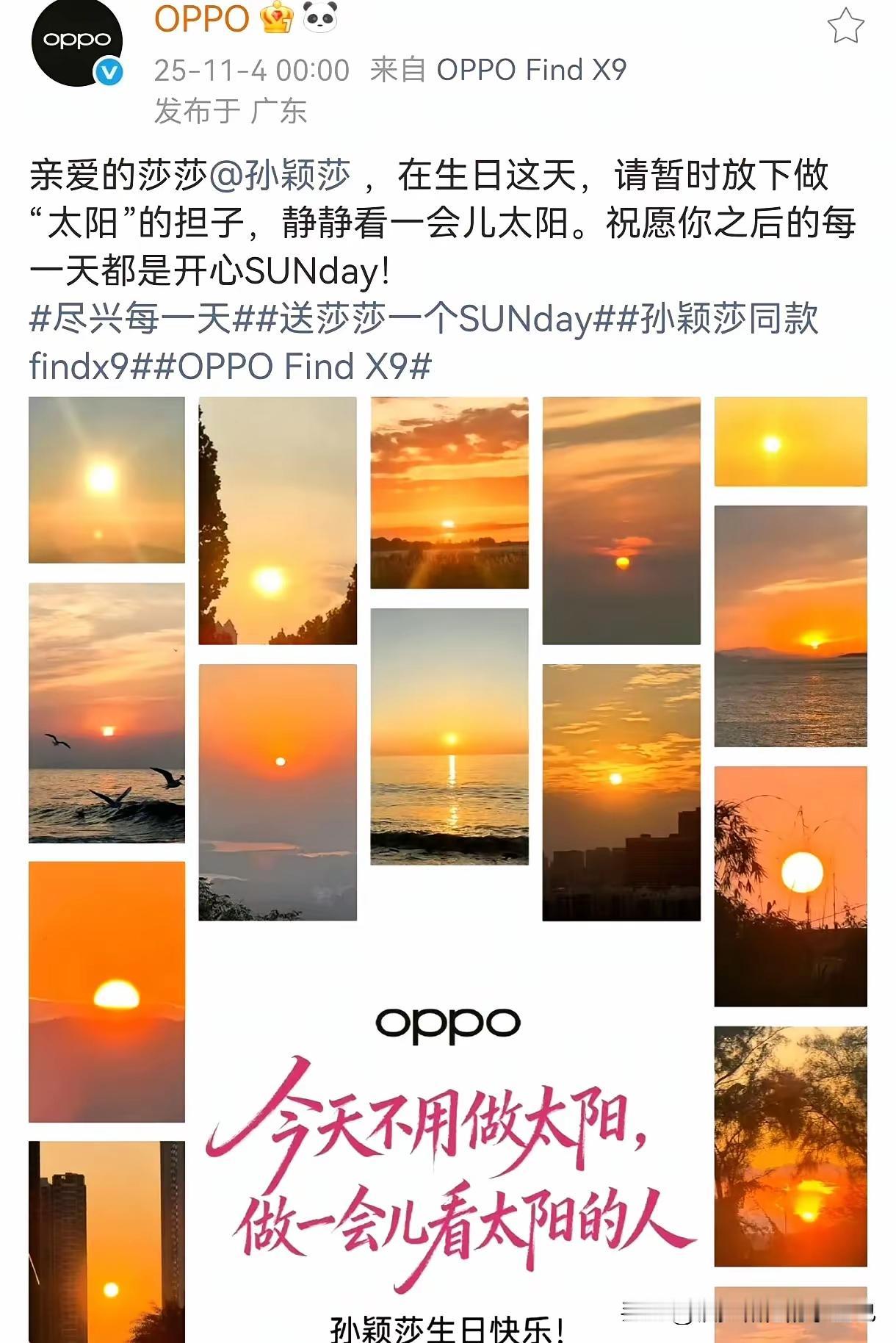 这里面要数0PP0设计独特,把莎莎比作初升的太阳。[赞] 11月4日是莎莎生日,零点整,莎莎代言的品牌方像约好了一样,集体发文为莎莎送上了生日祝福。孙铭阳也是掐着点发文,给莎莎送上了生日祝福,好幸福的莎莎哟。 今天莎莎要跟随河北队要奔赴澳门了,我们用以往莎莎过生日的仪式感来庆祝今天莎莎的生日。那次莎莎刚下训,队友们就给莎莎举办了生日仪式。曼昱和coco一左一右坐在莎莎两边,桌上放了个生日蛋糕,戴着生帽的莎莎和coco以及曼昱笑得非常灿烂,心情美极了。这一幕会定格在莎莎的每一个生日,太温馨了。 祝莎莎生日快乐,所愿皆如愿!
