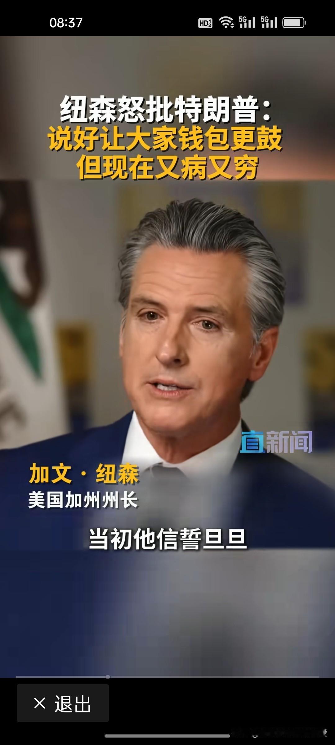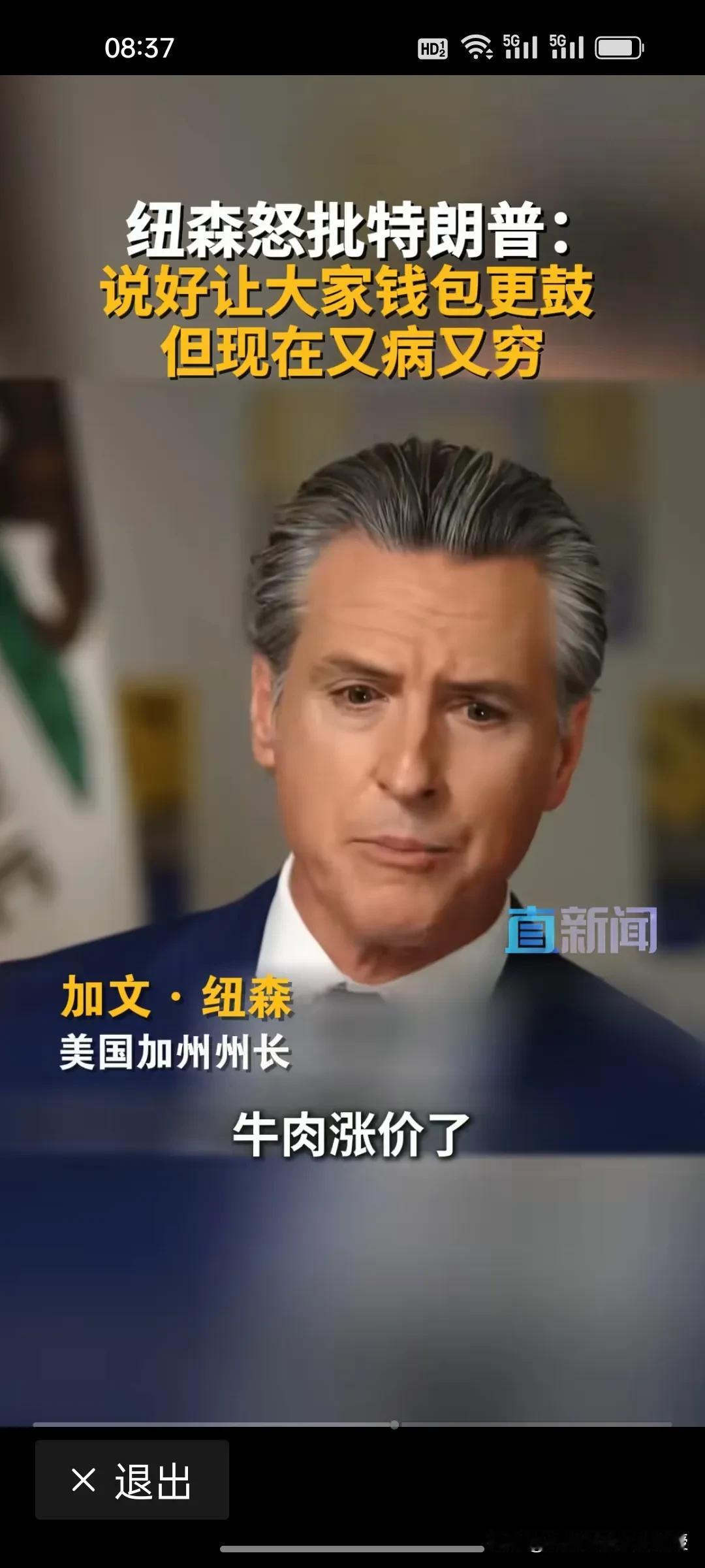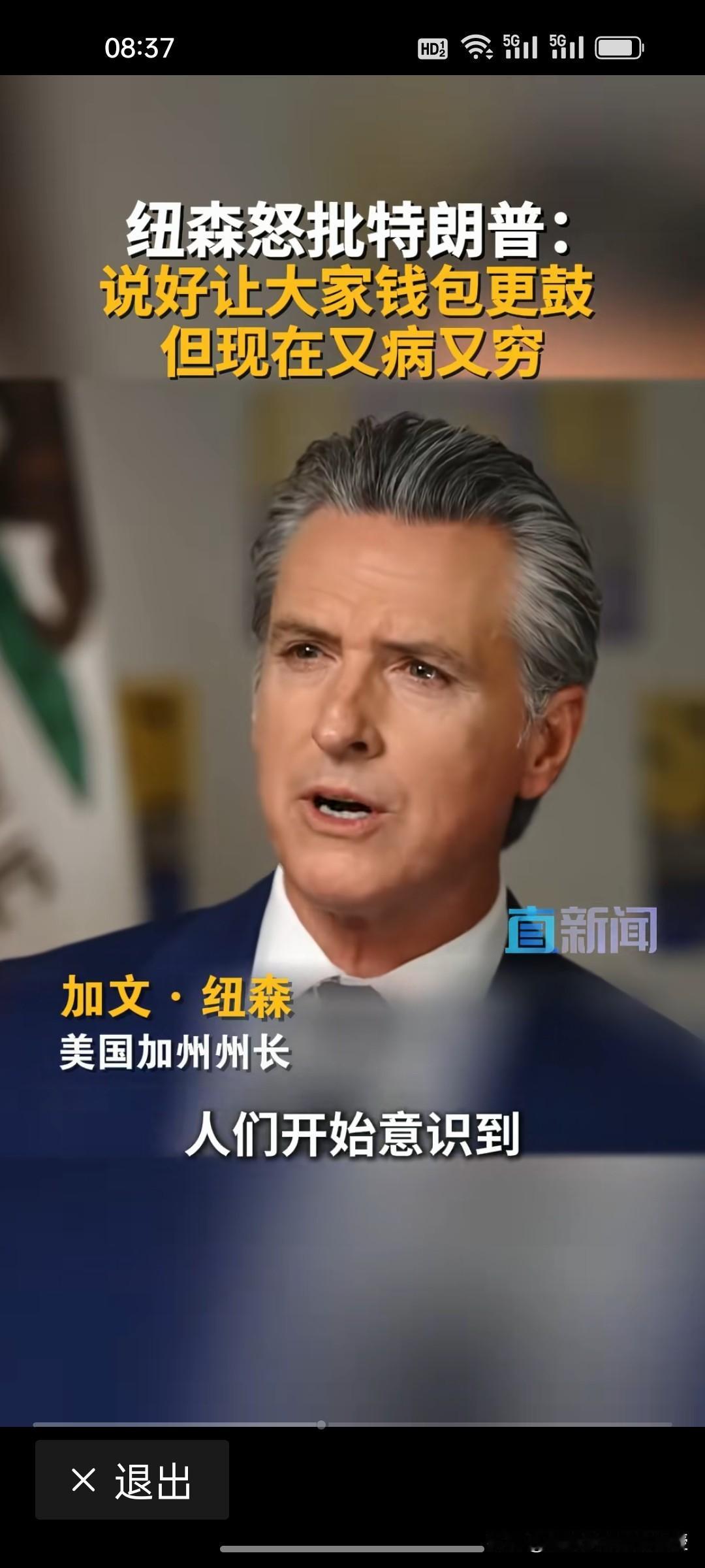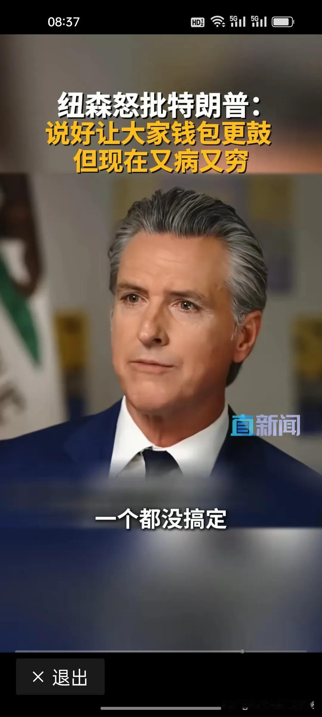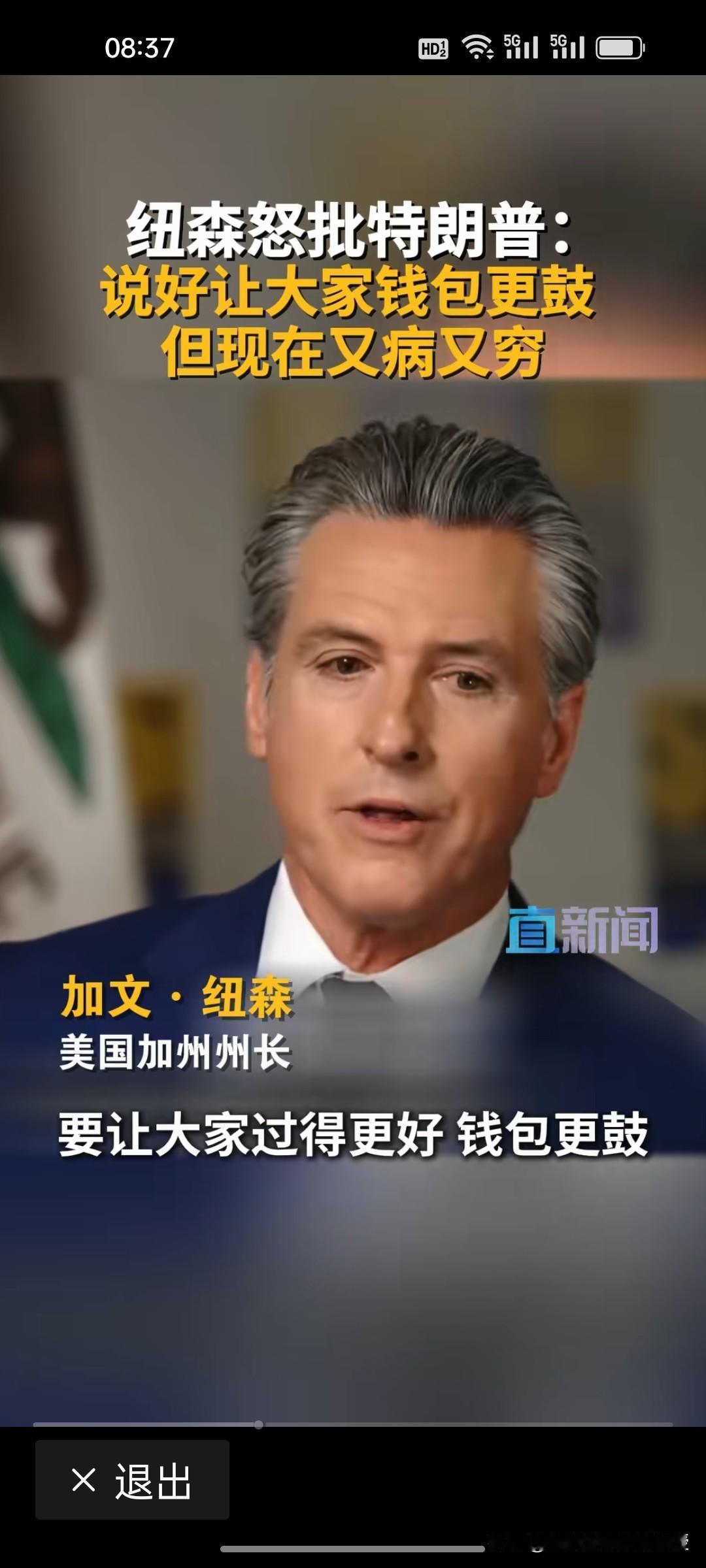 美国加州州长纽森这番话可能会让纽森的总统选举支持率大增啊!纽森说他考虑下一届总统参选,昨天他接受了美国媒体采访,说特朗普的支持率已经降到历史最低了。他的政策比本人更不得人心。当初说好的让美国老百姓过得好,腰包更鼓,现在老百姓又穷又病,还物价飞涨。特朗普承诺的上任第一天就要解决的问题,到现在一个都没有解决。 确实是这样,特朗普上任至今,虽然天天声称是一位”和平总统“,解决了8场战争,可是现在连美国政府都已经关门了,军饷都发不出,公务员都排长队等救济。再看看特朗普却把白宫的东翼拆了,要建豪华的宴会厅,把林肯浴室拆了,要件特朗普喜欢的金碧辉煌的厕所。昨天更被美国媒体爆料,特朗普在海湖庄园大开派对,歌舞升平,这是还有4200万美国人等着救济的当下,特朗普却可以和一群朋友们吃着昂贵海鲜,夜夜笙歌。
