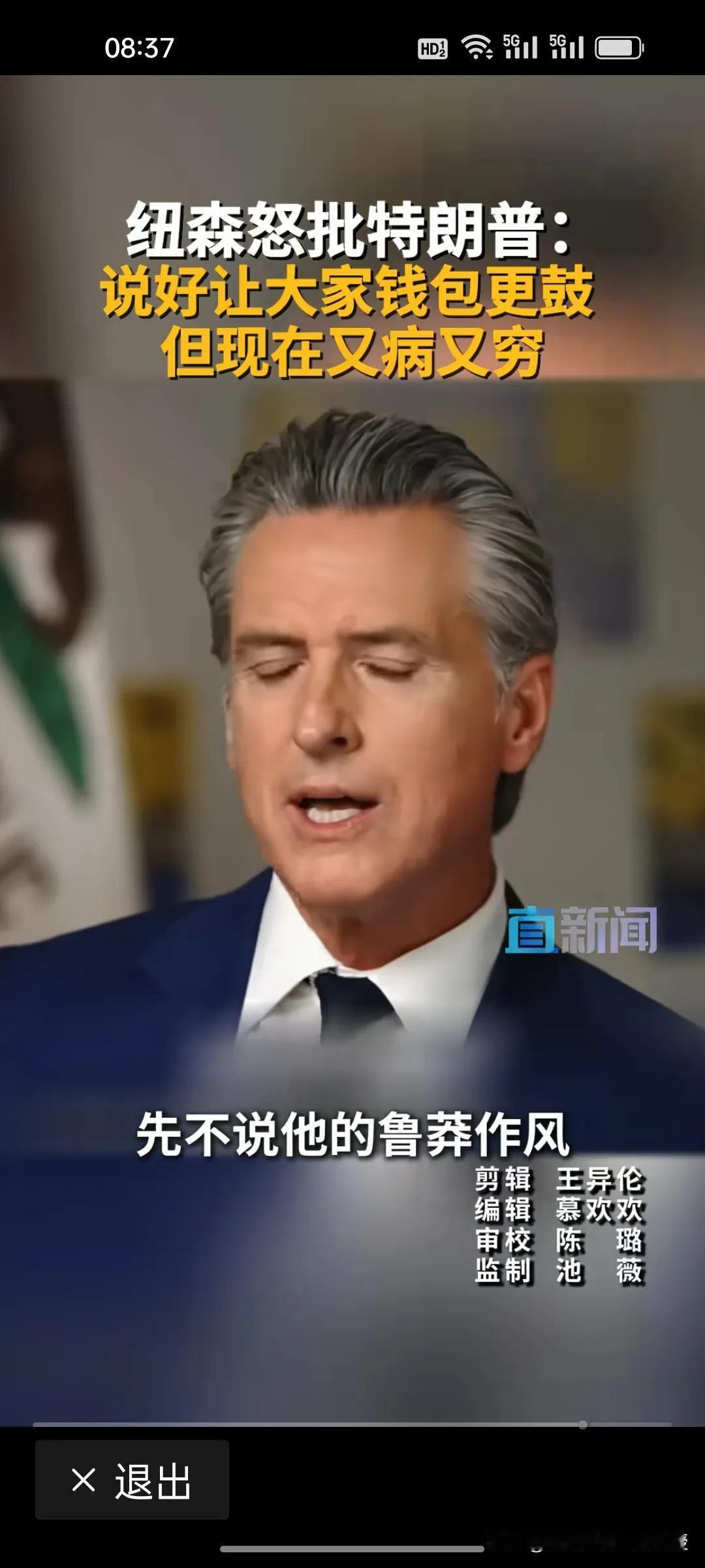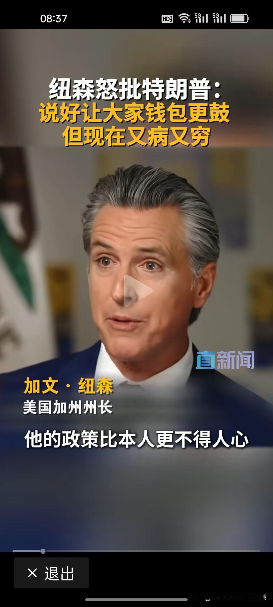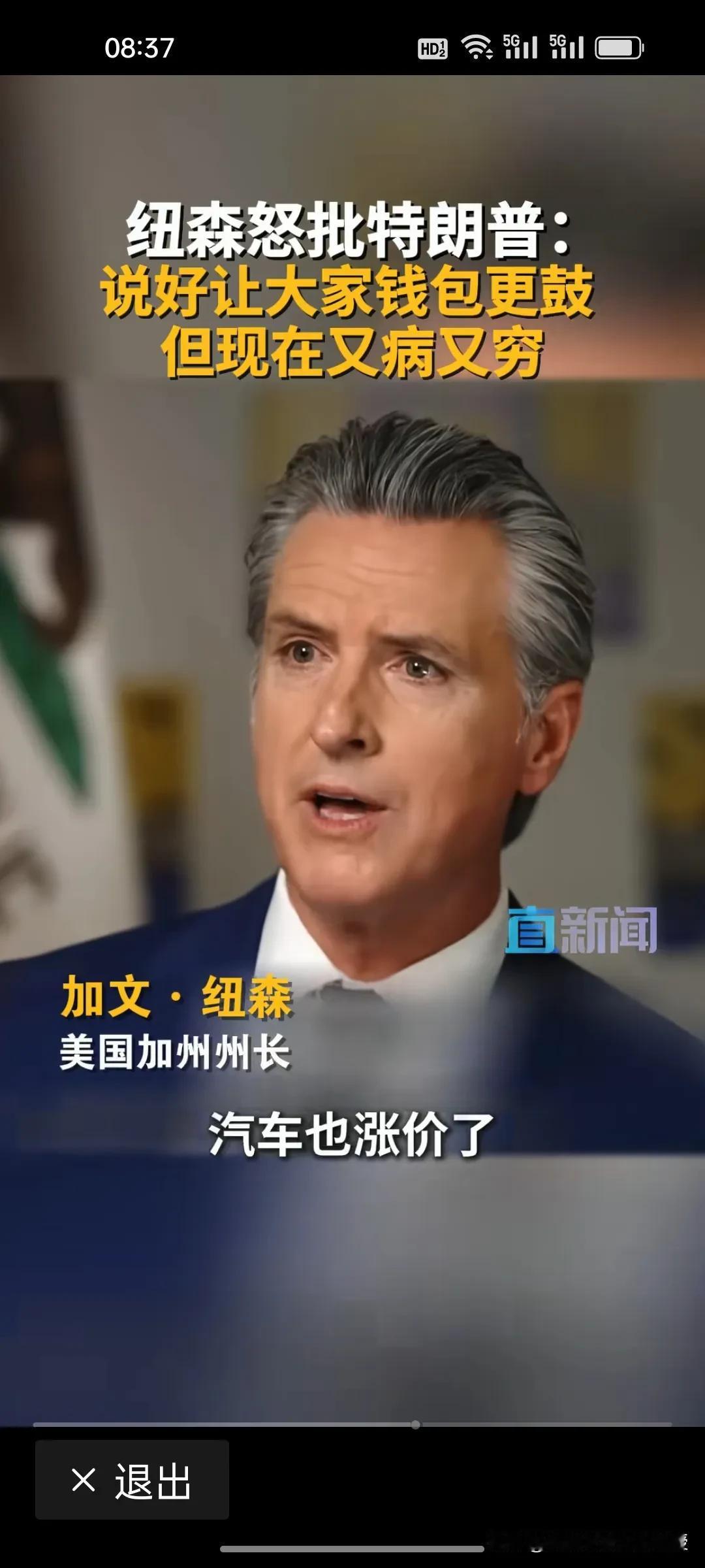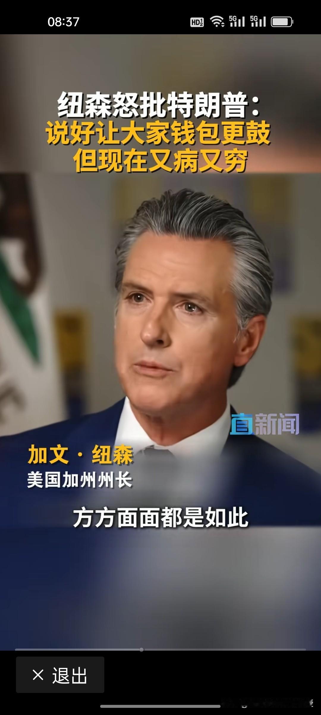 美国加州州长纽森这番话可能会让纽森的总统选举支持率大增啊!纽森说他考虑下一届总统参选,昨天他接受了美国媒体采访,说特朗普的支持率已经降到历史最低了。他的政策比本人更不得人心。当初说好的让美国老百姓过得好,腰包更鼓,现在老百姓又穷又病,还物价飞涨。特朗普承诺的上任第一天就要解决的问题,到现在一个都没有解决。 确实是这样,特朗普上任至今,虽然天天声称是一位”和平总统“,解决了8场战争,可是现在连美国政府都已经关门了,军饷都发不出,公务员都排长队等救济。再看看特朗普却把白宫的东翼拆了,要建豪华的宴会厅,把林肯浴室拆了,要件特朗普喜欢的金碧辉煌的厕所。昨天更被美国媒体爆料,特朗普在海湖庄园大开派对,歌舞升平,这是还有4200万美国人等着救济的当下,特朗普却可以和一群朋友们吃着昂贵海鲜,夜夜笙歌。