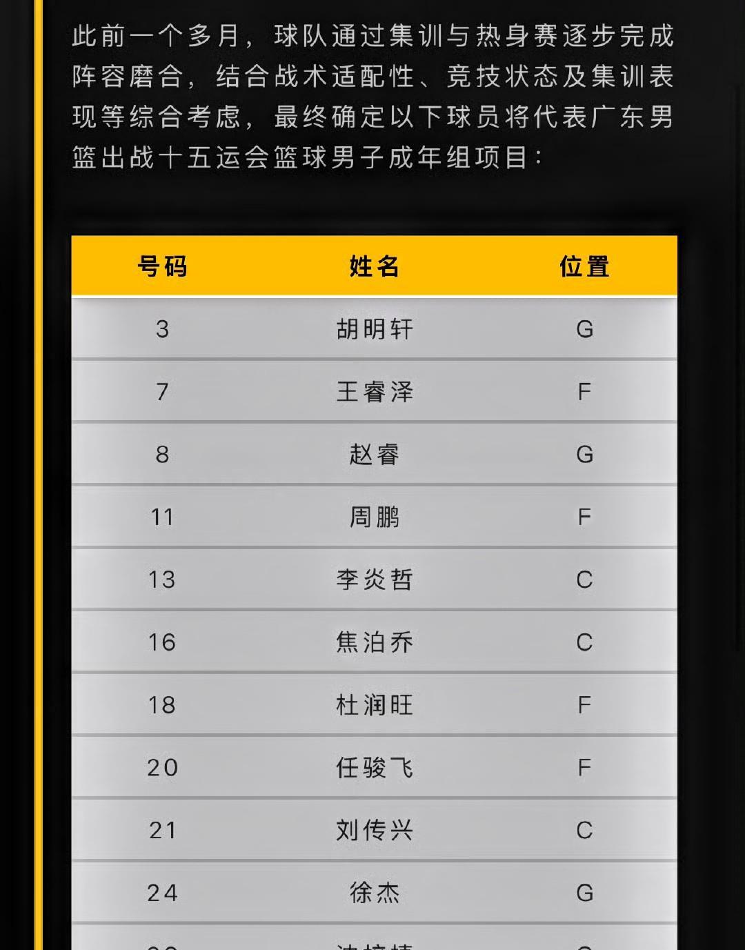 恕我直言!广东男篮参加全运会这个阵容比亚洲杯都要豪华,不拿金牌说不过去吧,12国手,三大后卫、四大内线,这配置超过四川,就算是杜锋带队去亚洲杯,至少打进前四,球员分布来自10个省份,CBA半壁江山,到家俱乐部主力,我相信杜锋带领下,拿到金牌还是从从容容,游刃有余的,再看一下辽宁男篮没有郭艾伦和张镇麟,但球员都来自辽宁省本土,杨鸣想继续实现以一省之力拿全国冠军壮举