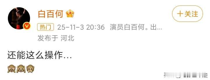白百何疑似内涵王传君!11月3日晚上,白百何在微博发文:“还能这么操作……”,在