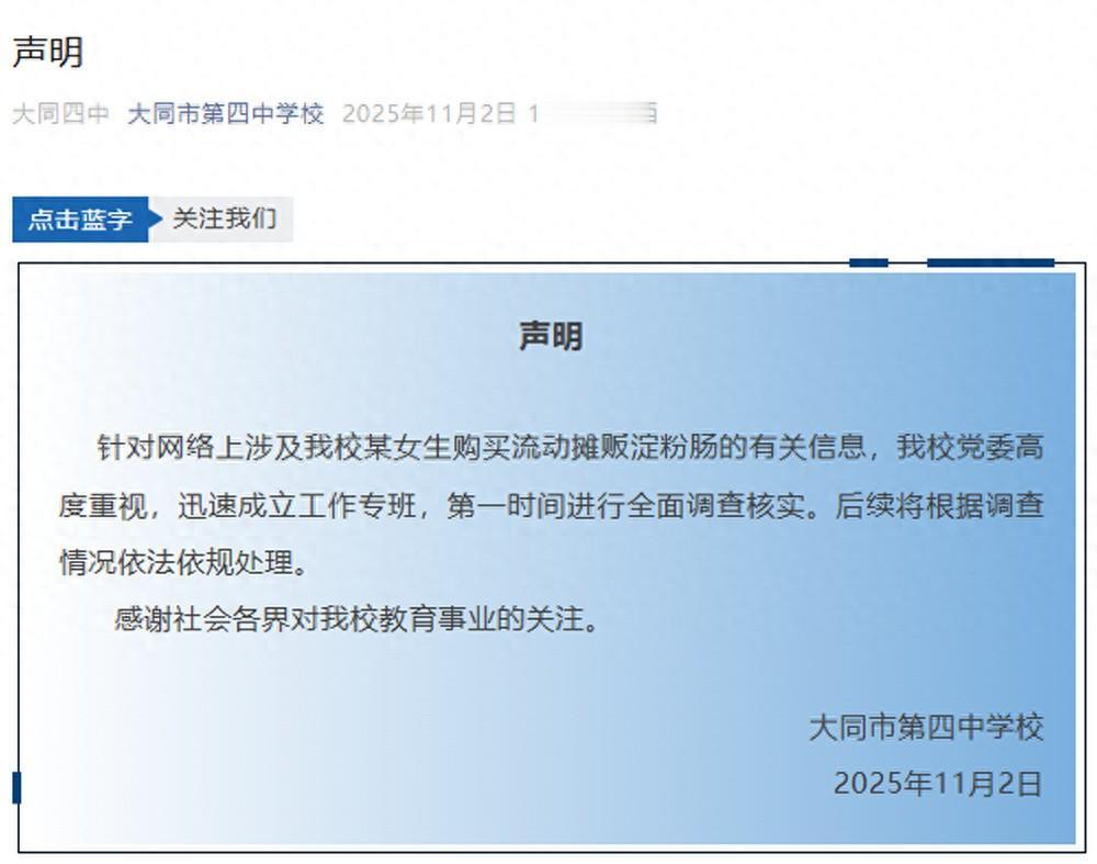 大同四中一穿黄马甲工作人员,校门口外抢走女生电动车钥匙和家门钥匙,拒不归还,学校该帮谁? 学校本来都不认为这是一个事,无奈网络曝光后,舆情太过汹涌,就先来了一个缓兵之计,发了一个声明,说在调查了。 这有什么好调查的,就看学校帮谁了,但其实帮工作人员或者帮女生都会有人有意见,毕竟学校门口这么近卖淀粉肠,本身就是学校管理不到位!