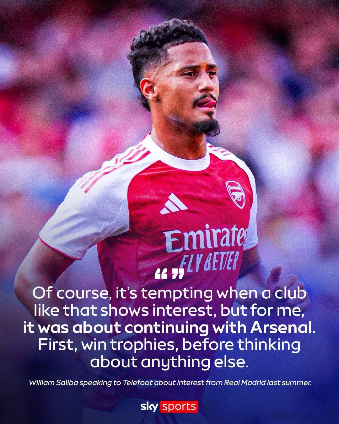 【先在阿森纳夺冠】🔴萨利巴谈皇马对他感兴趣:“当然,当像皇家马德里这样的俱乐部对你感兴趣时,这真的很有诱惑力……”