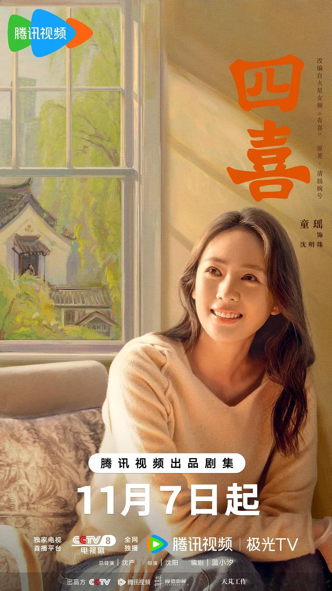 电视剧《四喜》定档11月7日开播,感觉蒋欣很有观众缘,cvb看好,不过主要还是得看狗血程度吧,椰奶就爱看冲突大的。