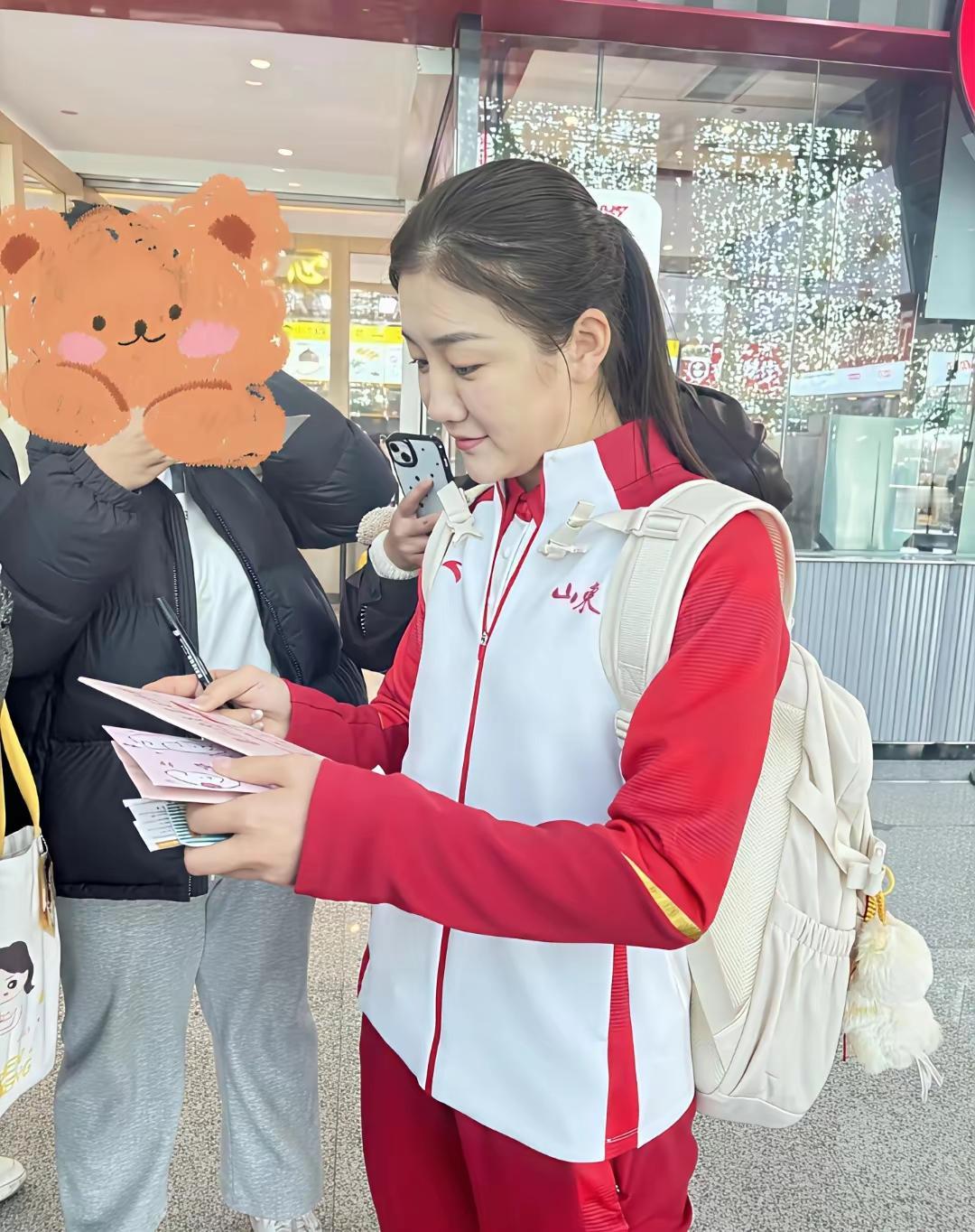 11月4日新鲜的陈梦太漂亮啦![比心][赞] 好像各省队约好似的,今天山东队也出发澳门了。 山东队最靓的不是他们的队队服,而是大美女陈梦![比心][赞] 陈梦在机场一边值机,一边给球迷签名。身边的球迷哪能放过这美好的时刻呀,纷纷拿起手机咔嚓咔嚓一番狂拍。[大笑] 今天的陈梦穿着红白相间的运动服,身背乳白色双肩包,包包上还挂着一粉一白两个小玩偶,一脸精致,太美了![比心][赞] 非常期待时隔近一年没有打过比赛的陈梦,在全运会上以精彩的表现,诠释两届奥运女单冠军的乒乓魅力。[赞] 陈梦加油,祝你在全运会上开开心心,健康完赛![赞][加油]