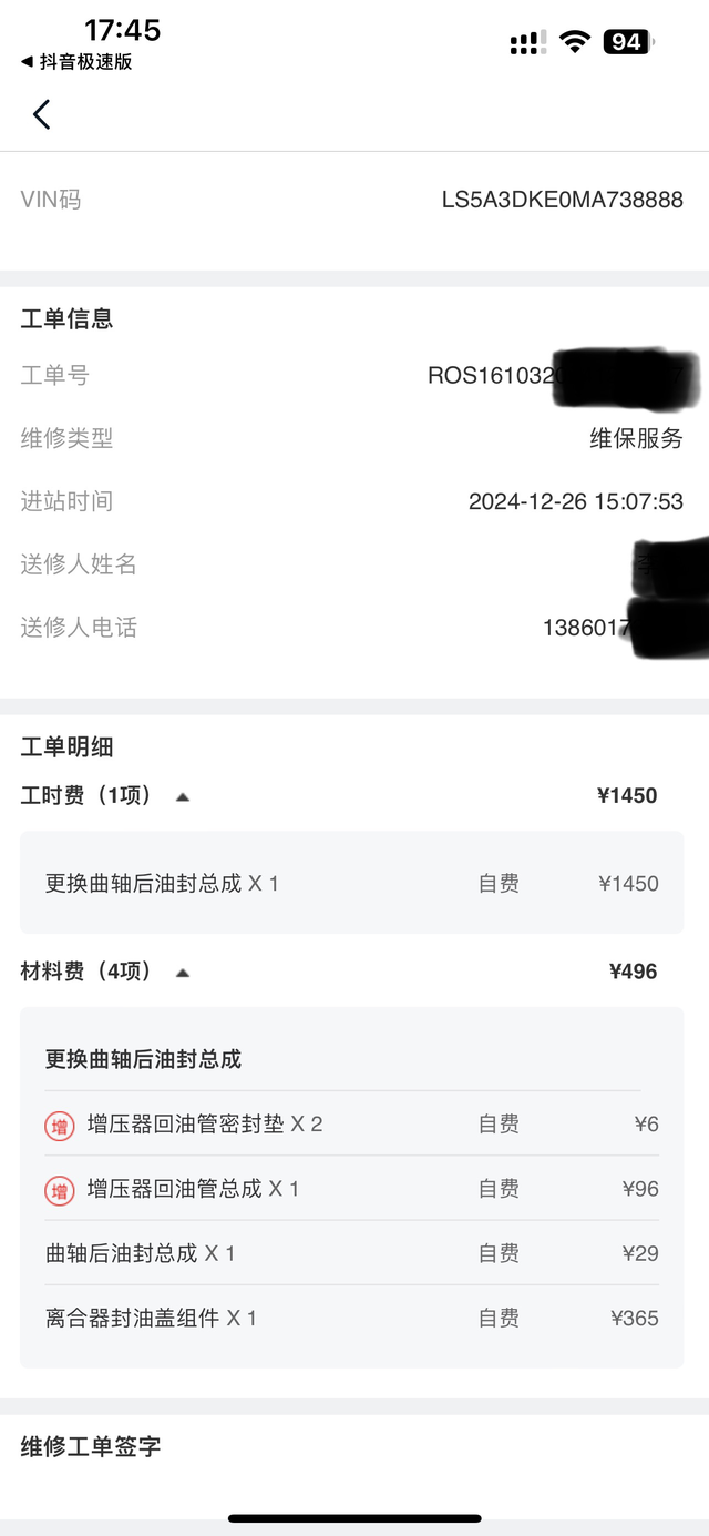 关于长安质量和售后。 我的 UNIT 过保,所以十月份的保养期不想跑太远去 4S 店保养,是在京东养车保养的。师傅在发动机和变速箱连接处的一个黑色金属上发现了有渗油。师傅用清洗剂洗掉了。让我再观察一段时间。两个月时间每天用车前都检查这个位置的地面都没有油滴下来,可是那个黑色铁块上还是有油。就去 4s 店了,工作人员看了说不能确定是发动机还是变速箱的油封老化渗油,需要抬变速箱下来。然后说我的车过保了需要自费。我跟工作人员说明了情况,毕竟才过保五个月,在保的时候都是 4s 保养,4s 师傅为什么没有发现?要不是过保了我也不会在京东保养,不在京东保养也发现不了问题。4s 维保人员说帮我跟厂家申请,第二天答复我。到了第二天打电话过来说通过了申请特殊保修。之后抬下变速箱发现是发动机一侧的曲轴后油封渗油。还发现了增压器回油管也轻微渗油,以免不久还要抬变速箱所以顺便还把没坏的离合器油封这样的易损件也给换了。服务不错。就是这款青山 df727 变速箱毛病太多。听说后来的 733 好多了。长安老车主就等于国产变速箱测试员,不过是自费测试。还好维修的时候虽然清单上写的是自费,但是 4s 没收钱。最后希望长安能服务好第一批支持 uni 系列车型的老车主,把 UNIT 的车机更新下导航。别卖出去就不管了只盯着新上市的车型更新。引力 App 上连 UNIT 的宣传介绍都找不到了。