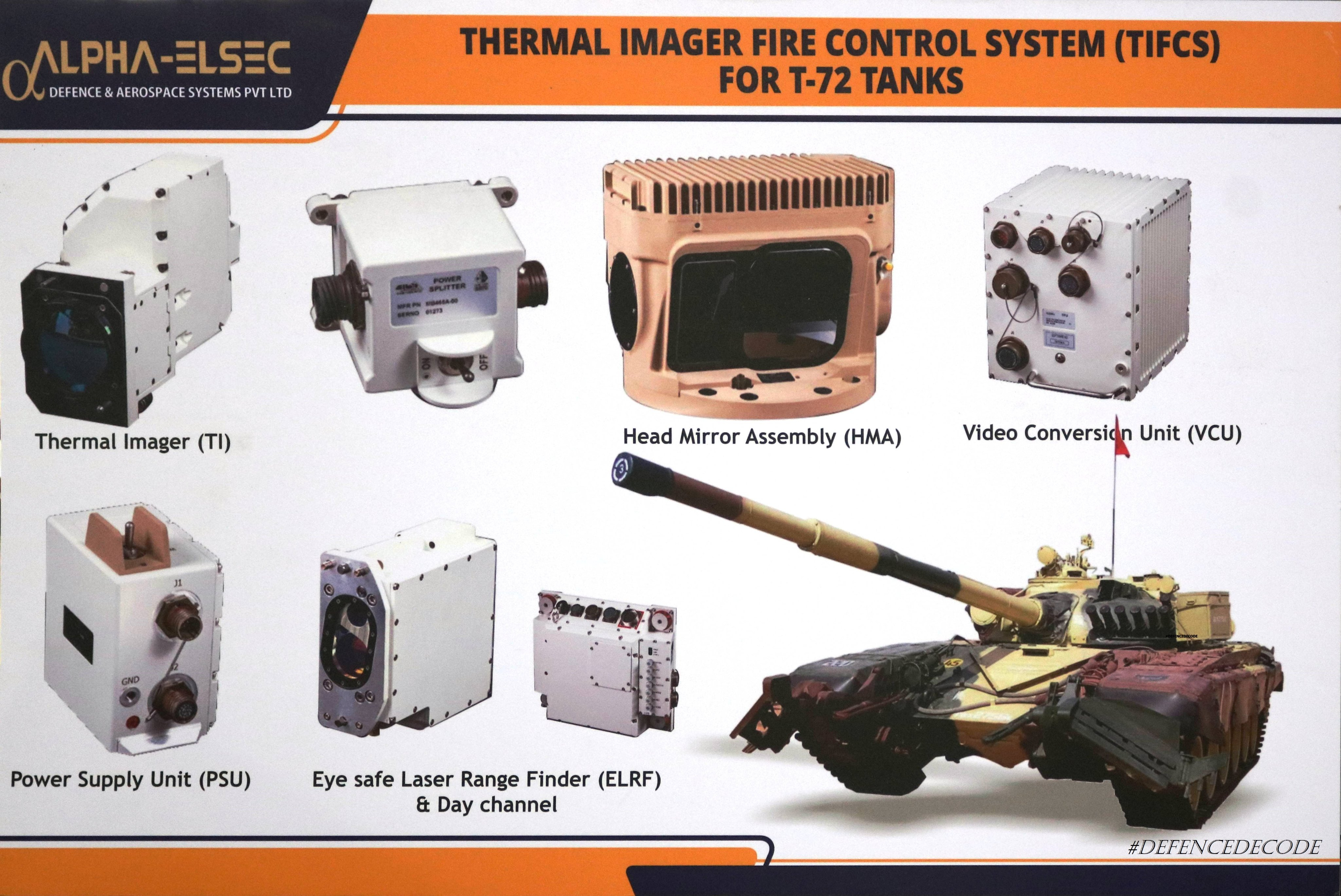 目前印度陆军最高配火控的T-72M1改进型“阿杰亚”(CIA)主战坦克,炮长观瞄分系统采用了以色列埃尔比特系统授权印度Alpha-Elsec公司许可制造的热成像火控系统(TIFCS),该火控集成有带第三代热成像仪、人眼安全激光测距仪、昼间CCD摄像头的高稳定精度炮长镜,提供额外的自动跟踪能力,并集成有综合气象传感器,使坦克可在3公里射程内精确射击。