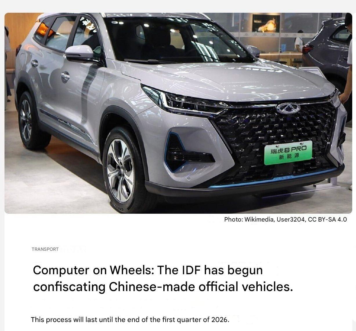 以色列正在没收中国制造的公务车,声称这些汽车传感器收集敏感信息回传到中国服务器 很怀疑是现代起亚在搞事,奇瑞在以色列一直都卖得不错,但是以色列销量冠军之前一直是现代起亚,7月份奇瑞第一次登顶以色列销量冠军[笑哭][笑哭][笑哭]