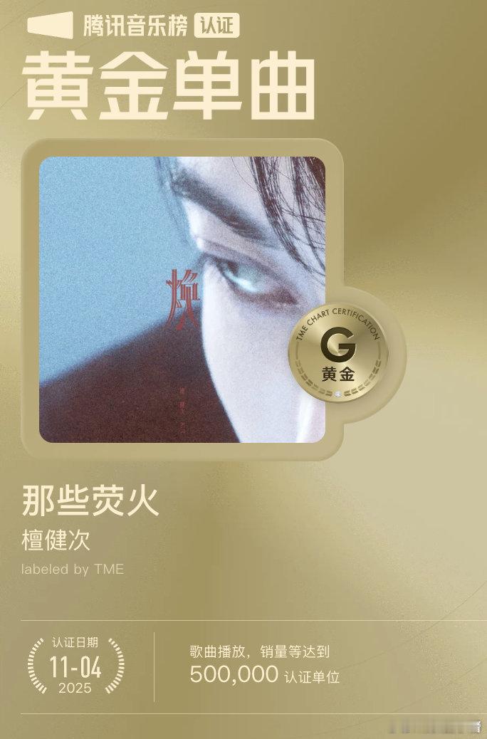 檀健次《那些荧火》获得腾讯音乐榜黄金单曲!截至目前,檀健次已获得1首白金单曲,7首黄金单曲!恭喜[努力]