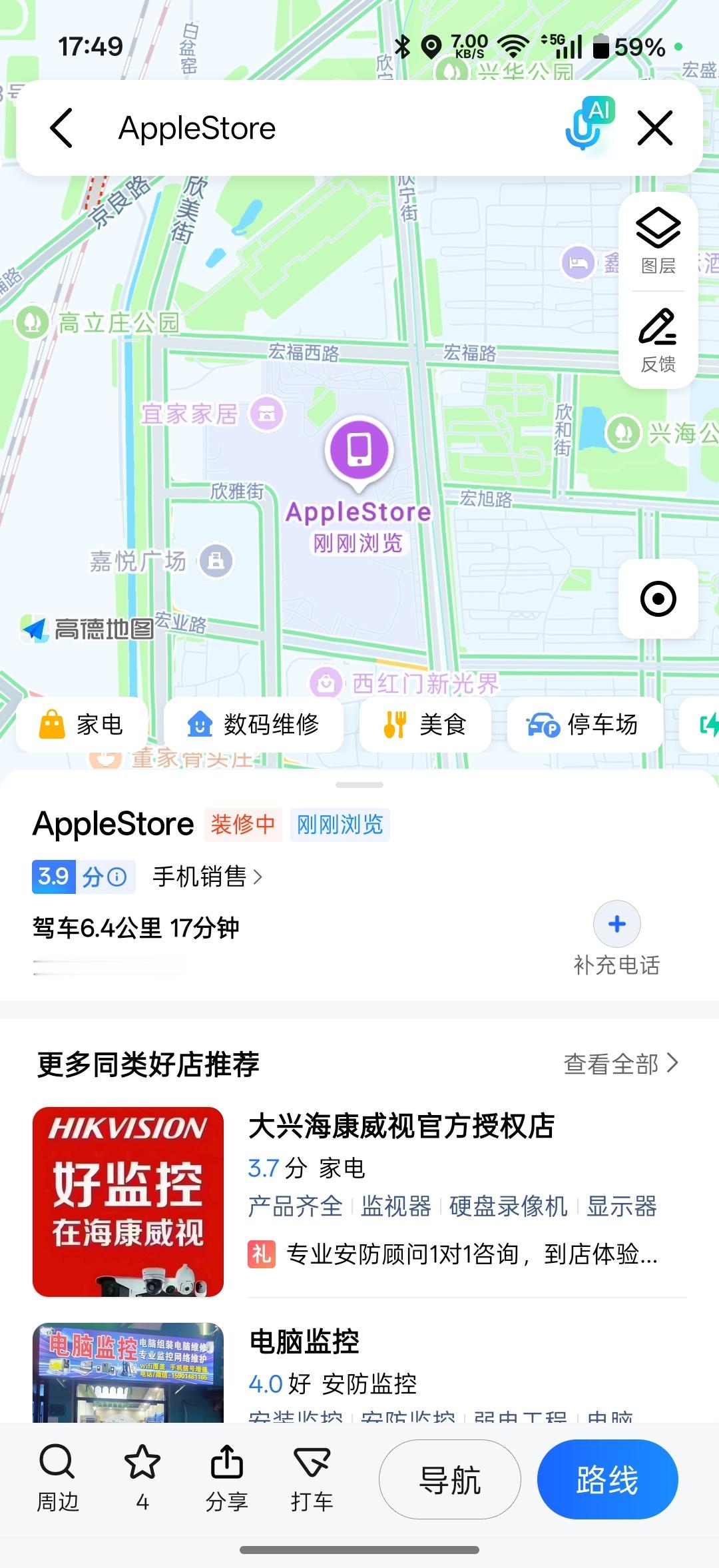 大兴西红门荟聚的这个新 Apple Store 已经可以在高德地图上搜到了,显示正在装修中[馋嘴][馋嘴][馋嘴]