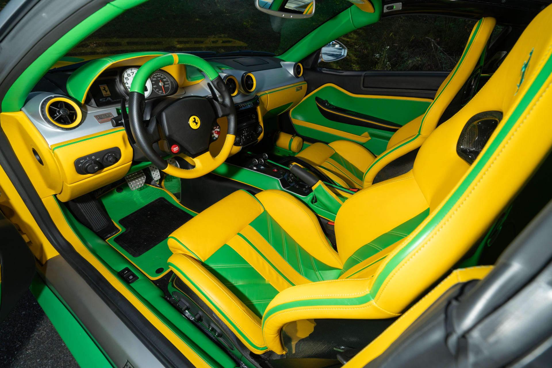 我研究过很多辆Tailor Made法拉利,包括官方出品的纪念涂装,但和这两辆599相比,那些个性化定制略显平淡。从车身拉花到内饰分色,这两辆599没有放过任何一处细节,黄色或绿色的马标,彩色碳纤维发动机饰板,飘扬的意大利国旗。