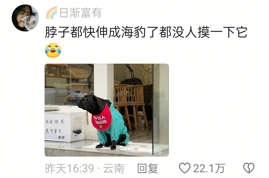 狗狗因没人摸它都快委屈哭了狗狗的头都快伸成长颈鹿了[泪奔]