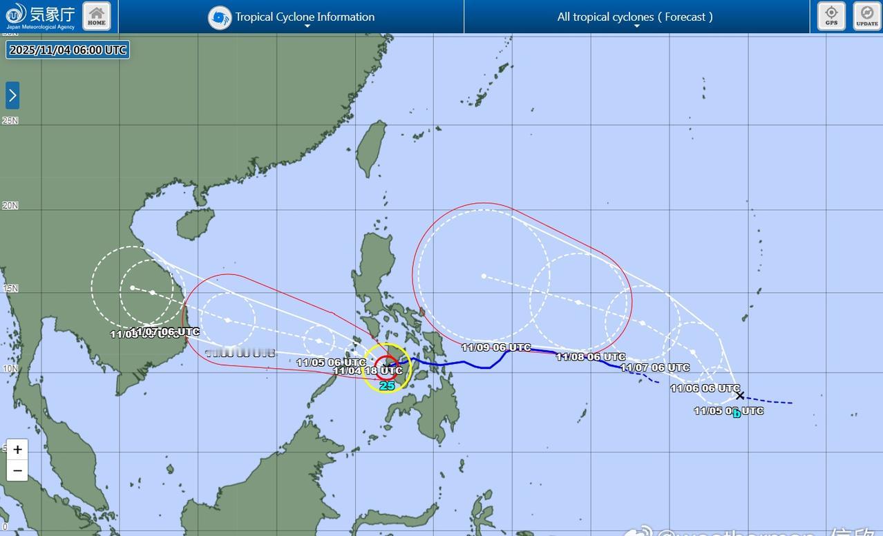 【11月5日将出现双旋共舞】今天关岛南侧的扰动90W,明显发展。日本气象厅已经给出预生成提示,未来24小时将发展为热带风暴,成为26号台风凤凰,最快今晚就会编号,最迟明天编号。因此11月5日将会看到台风海鸥和凤凰,双旋共舞。未来台风凤凰会先向西北方向移动,下周会靠近我国,是否登陆待定。