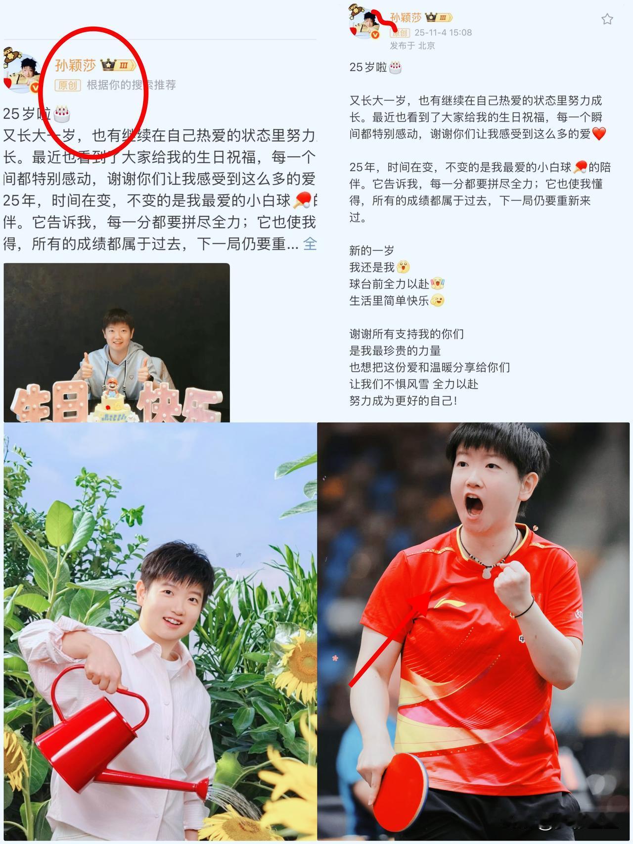 这下好了。 全国的粉丝都被她惹哭了。 孙颖莎发微博说—— 最近也看到了大家给我的生日祝福, 每一个瞬间都特别感动! 原来我们所有的爱,她都看在眼里,记在心底。这份被珍视、被回应的懂得,瞬间击中了所有人——她什么都知道。 她明明站在万众瞩目的赛场,却没漏掉粉丝送的每一份生日祝福,还特意发博说“每一个瞬间都特别感动”。这种被珍视的感觉,比任何应援都让人暖心——原来我们的牵挂她都知道,我们的喜欢从不是单向奔赴。现在的圈子里,太多人被流量裹着走,可孙颖莎还是当初那个纯粹又明亮的模样,没一点架子,连回应都带着温柔的诚意。 其实粉丝和偶像之间,最珍贵的从不是多热烈的追捧,而是这种“我懂你的心意,你也珍惜我的付出”的双向奔赴。你有没有因为孙颖莎的某个小细节,觉得粉对人了呀?孙颖莎 球星孙颖莎