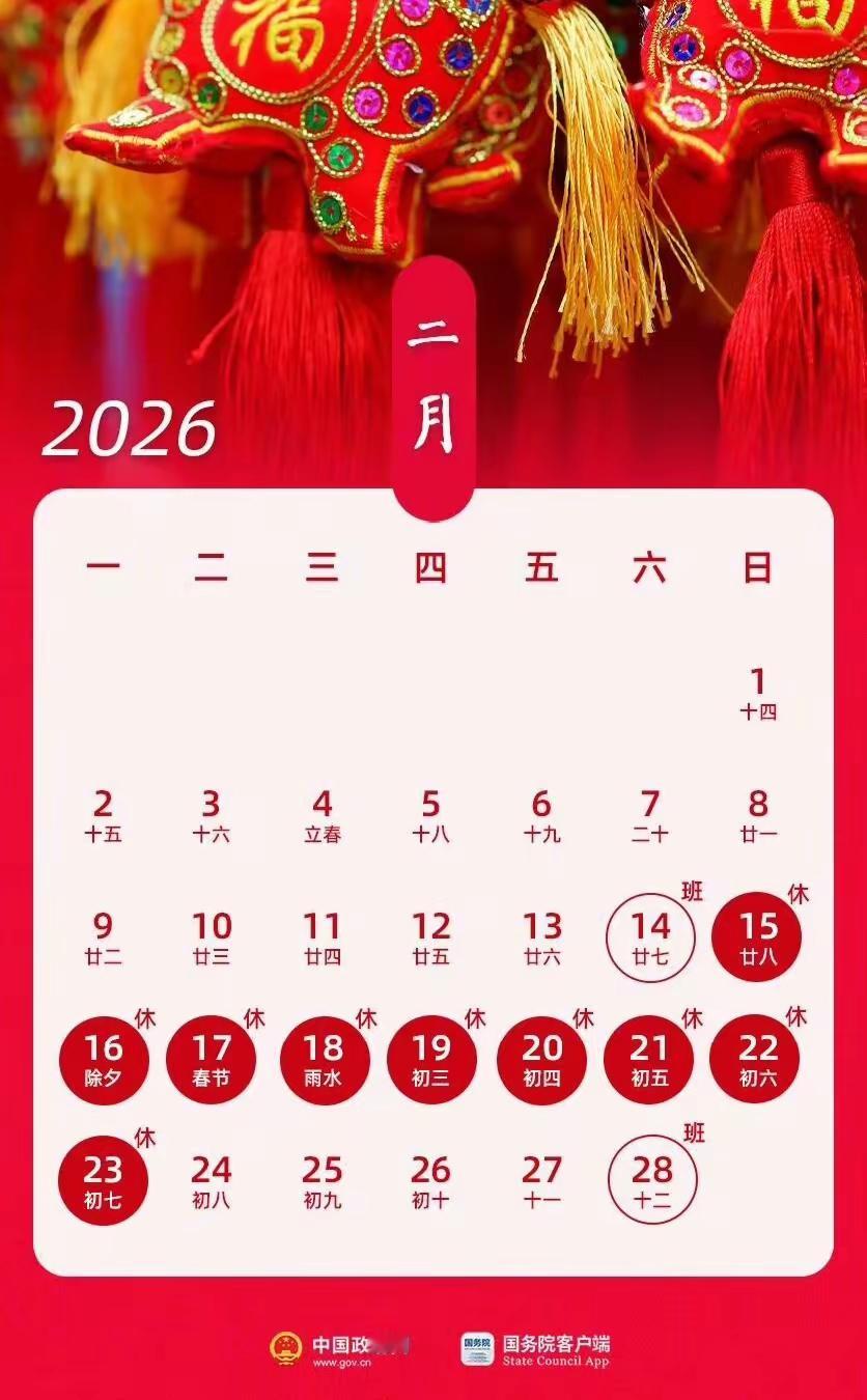 2026春节放9天假放九天,调休两天,史上最长春节,大家对这个安排还满意吗?[不愧是你]