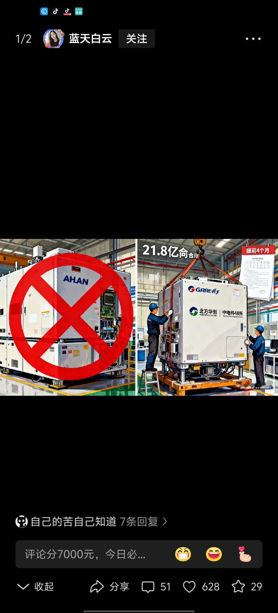 你敢禁运,我就敢换!荷兰icon刚把关键半导体设备加进对华禁单,格力icon立马取消进口订单,21.8亿合同全给北方华创icon、中电科icon48所,更惊喜的是交货提前四月。国产设备的逆袭,从这一刻开始了? 荷兰这招禁运有多狠? 之前禁 EUV 光刻机还只是卡高端制程,这次连 NXT:1970i 这类 DUV 设备都禁了,荷兰本想釜底抽薪,让中国芯片厂 “无米下锅”,可没算到中国早备好了 “替补队员”。 格力的操作堪称 “教科书icon级反制”,以前大家总担心 “国产设备行不行”,这次用实际订单给出答案。 网友:格力董事长董大姐在民族大义面前有担当、有骨气取消荷兰订单,把订单给了咱们中国人芯片企业直得点赞! 这就是市场的力量!荷兰不是不想禁,是被中国市场吸引的不能自拔!中国市场营销占比百分之几十,那可是真金白银谁舍得说扔就扔!现在想彻底断供已经晚了,国产平替已经成气候了! 荷兰越是禁止,中国越是反弹,荷兰再禁三年中国什么光刻机都解决了。 这就是民族大义,爱国行为,天天网上天天说爱国绑架的人,就是蠢与坏,天天黑国产,没有我们自己的民族企业哪来的尊严,凡是把买国产和爱国绑架的这批人大概率不是真心爱国的的或者水军和没脑子的人。