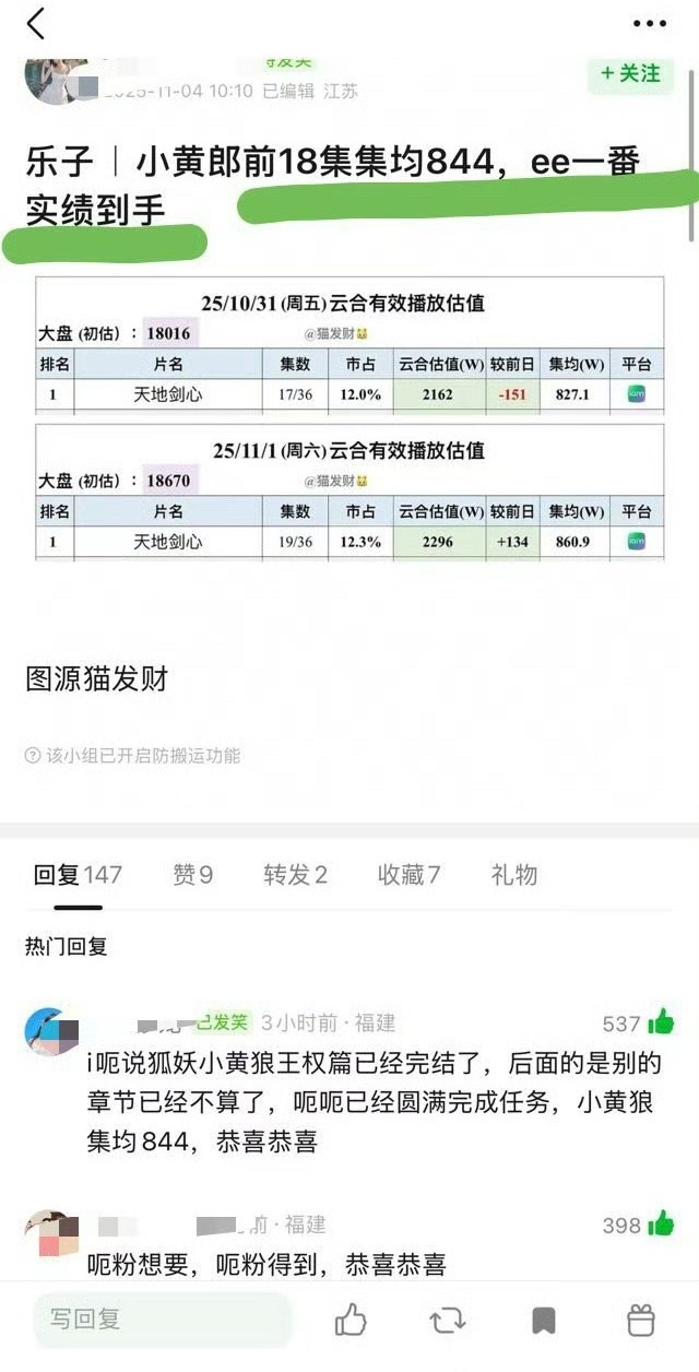前18集集均844哦,恭喜!🎉🎉844这个数字请帮忙宣传出去哦,谢谢啦!