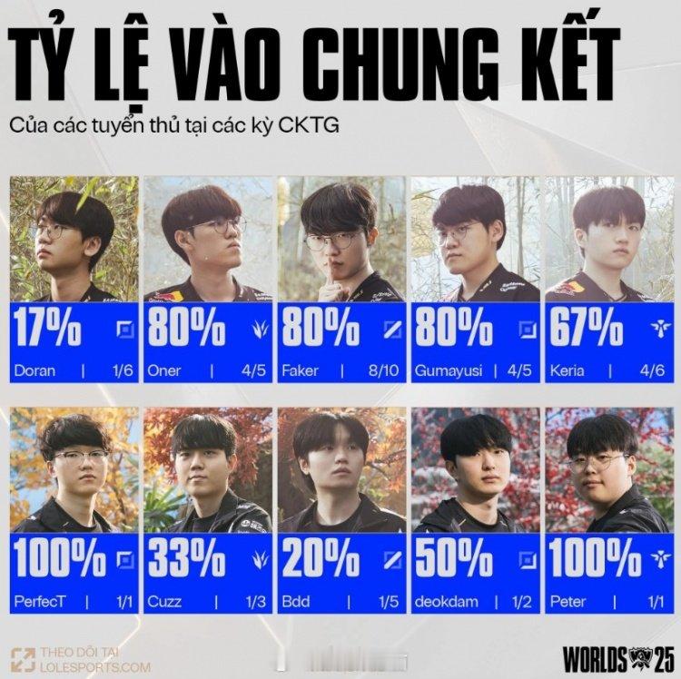 赛事官方统计T1、KT选手参加S赛晋级决赛概率:T1三人80%