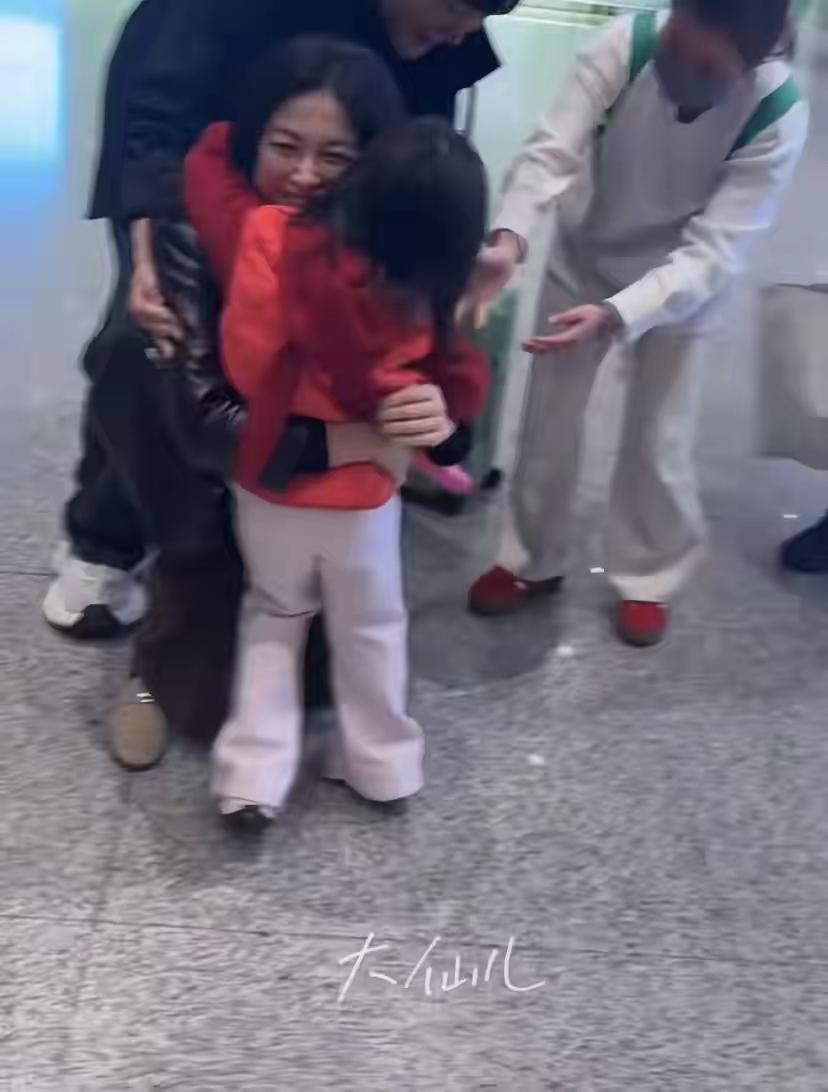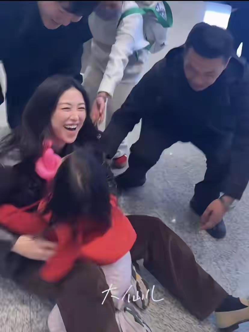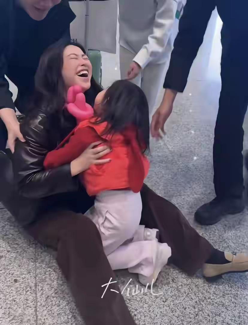 网友机场偶遇朱珠女儿接机,母女拥抱过猛,朱珠倒在地上大笑起来! 4岁女儿看到妈妈后太激动,猛的扑倒妈妈身上,结果把朱珠扑坐在地上,母女拥抱,幸福感满满! 镜头下的朱珠身穿黑色皮衣下搭深咖色裤子,长发及腰,素颜亮相,颜值抗打,面对女儿接机,她弯下腰想和女儿来个拥抱,结果女儿用力太猛,把朱珠倒地地上,母女拥抱大笑,画面太温馨了!