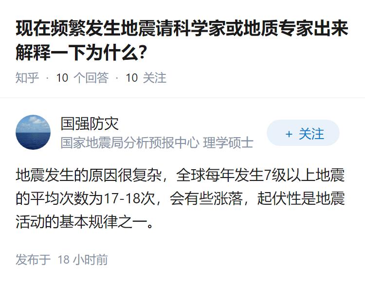 现在频繁发生地震请科学家或地质专家出来解释一下为什么?
