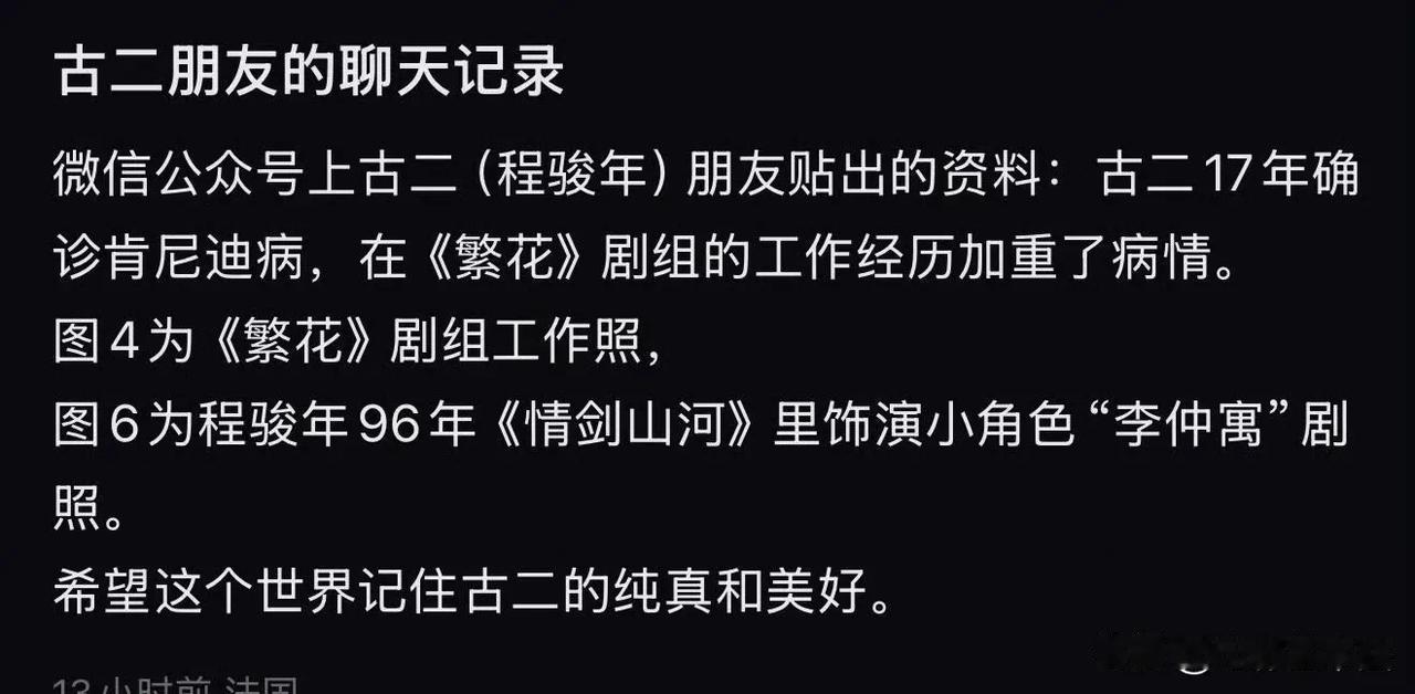 古二说自己17年就患病了,因为担心误诊,先后去了北京、上海、美国检查,结果出来后还不想放弃事业,于是又打拼了3年,这3年整天熬夜、加班、应酬、酒局、饭局,还在《繁花》剧组遭到了职场霸凌,这让他的心情跌入低谷,加重了病情。 病情加重后的症状听起来就让人觉得压抑:面部肌肉僵硬、舌肌萎缩、四肢无力、语言苦难、手抖、面部抽搐、腰部疼痛等等。 虽然古二值得同情,但我还是要说他错了,而且是大错特错,确诊后就不应该还那么执着于职场,毕竟成功是未必的,身体才是自己的,这样做不是自己作践自己吗?