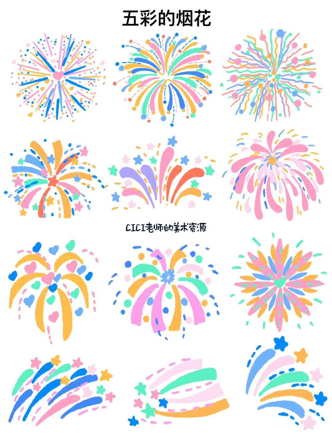 🎨这些素材适用于与庆祝、烟花相关的美术课程: