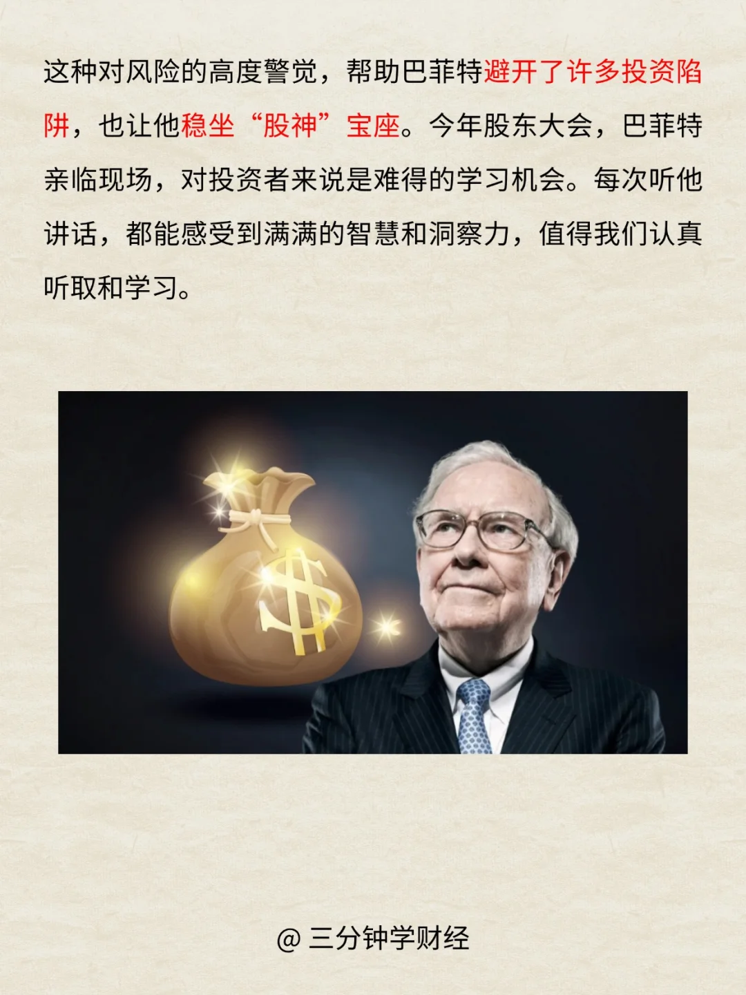这种对风险的高度警觉,让巴菲特能够避开很多投资陷阱!也让他能够稳稳地坐在“股神”的宝座上,今年的股东大会,巴菲特老爷子还会亲临现场,这对于我们投资者来说,可是一场难得的学习机会!每次听到巴菲特的发言,都让人感觉充满了智慧和洞察力呢,非常值得我们去好好倾听和学习。巴菲特股东大会 、