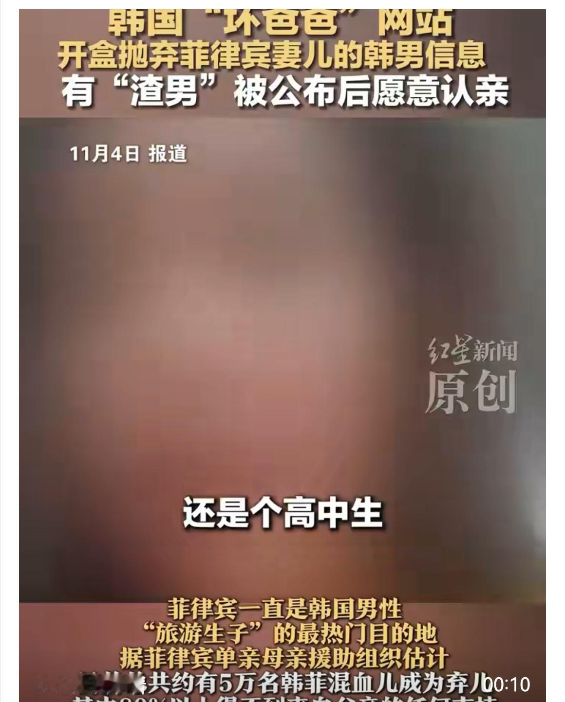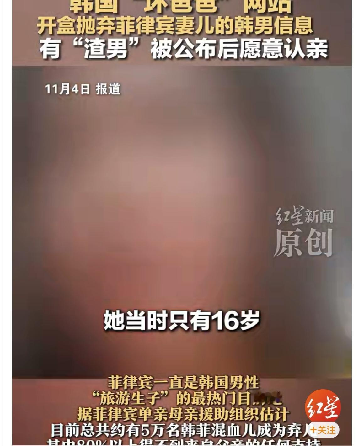 【热点快讯】韩男子菲律宾逃“爹”身份,5万混血儿寻亲揭窝囊真相 你见过这么窝囊的“爹”吗?据外媒报道,菲律宾有多达5万名韩菲混血儿童苦苦寻找自己的韩国爸爸。而这些爸爸,大多数都是在菲律宾与当地女性非婚生下孩子后玩起了“消失”,不仅拉黑妈妈,甚至连护照号、手机号都不留,最离谱的是有人还直接谎称自己不是韩国人,生怕被找到。 事态引发关注,韩国公益组织“解费团”(原名“坏爸爸”)的负责人具本昌站出来说话了。他直接把那些韩国男人和他们孩子的照片晒到社交媒体,直言哪怕引来名誉争议也不会后退。没办法,找人无门,只能上网公开,看谁还能躲得过。 公开照片后,效果立竿见影。不少韩国爸爸开始主动联系那些被拉黑的菲律宾单亲妈妈,有个一跑就跑了七年的爸爸,也终于“现身”了。看来,比起责任,这些男人更怕被曝光、被网络扒出来。 具本昌坦言,曝光并非首选,是最后的手段。毕竟这些人在菲律宾时,各种伪装和撒谎技能层出不穷。这场父子认亲大戏,荒唐中带着现实的沉痛,也让人忍不住问一句:逃了那么久才知道害怕,真是窝囊之极! 随着关注升温,希望这些孩子能早日找到自己的亲生父亲,不再成为遗落在陌生国度的“谜团”。