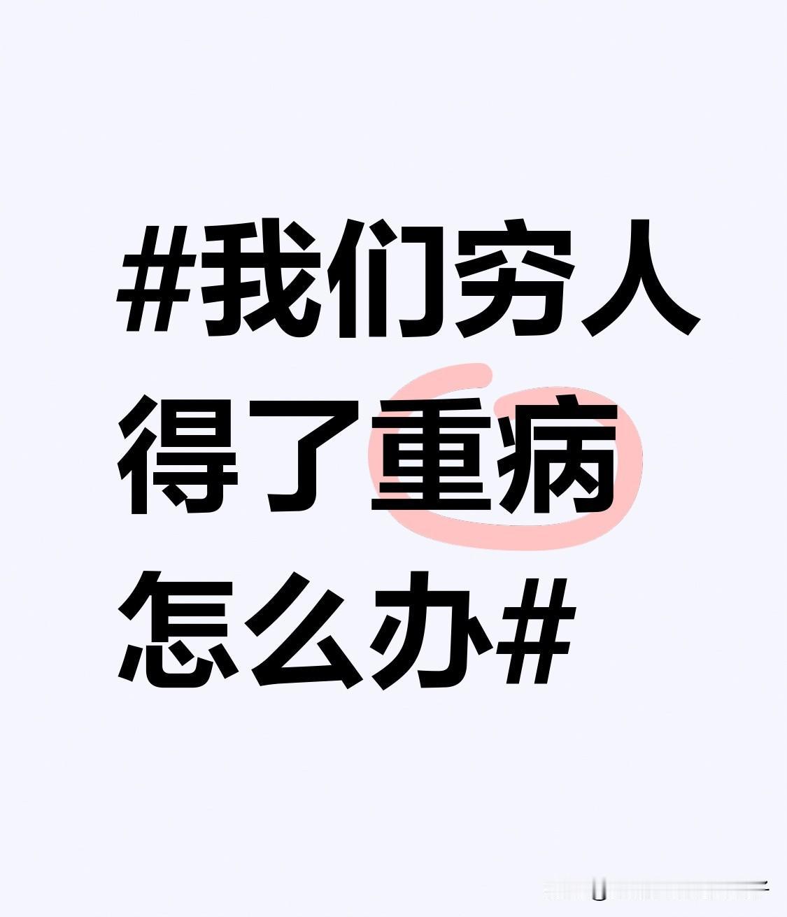 穷人得了重病,真的是雪上加霜。很多时候,医保能报销的有限,大量费用还得自己掏,经济困难的家庭根本承受不起。 不过,咱也不能坐以待毙。首先可以申请政府医疗救助,准备好低保证明、诊断书等材料,向当地民政部门或医保部门提出申请。还能寻求社会慈善援助,像联系红十字会、基金会等组织获取支持,也可以发起网络众筹。 心态也得调整好,别被困难打倒,每天健康饮食、适度锻炼、好好休息。相信天无绝人之路,只要努力,就有希望战胜病魔,顽强地活出自己的精彩。