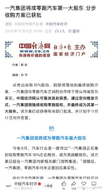 一汽成零跑最大股东了【来自懂车帝车友圈】