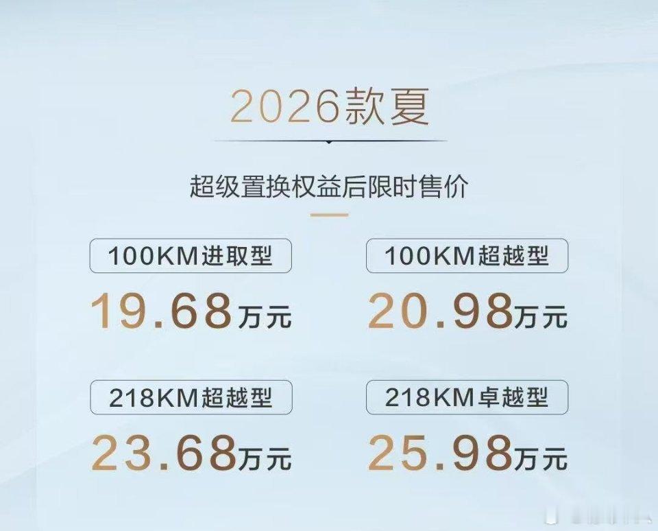 2026款夏19.68-25.98万,该有的配置基本都有了。