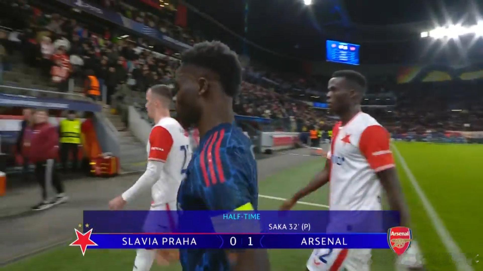 半场结束,布拉格斯拉维亚暂0比1落后阿森纳