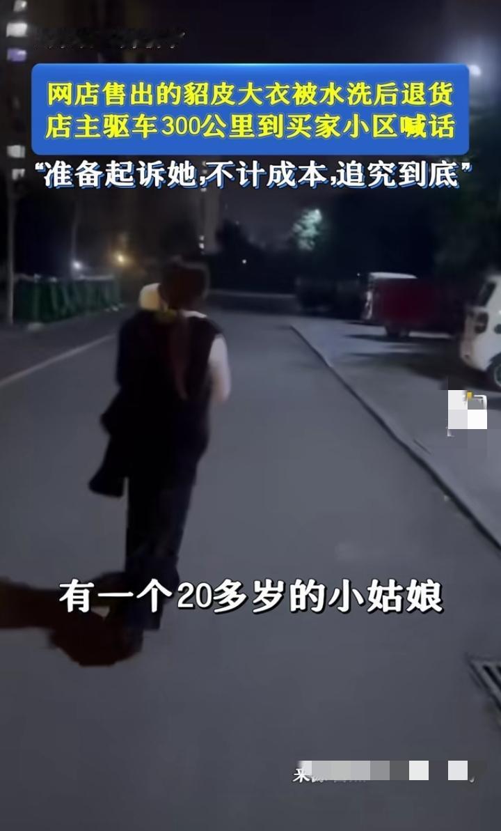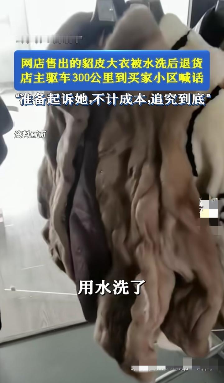 近日山东济宁,一22岁女子在网上买了件貂皮大衣,然后又退款了,没想到这一举动直接惹怒了店主,原因竟是这样! 女子在网上买了一件貂皮大衣,然后还用水洗了下,之后又退了回去,店主发现退回来的衣服被洗坏了,结果女子死不承认,气的店主开车300多公里,带着喇叭来到女子居住的小区喊话,准备起诉她,让她赔偿!店主表示:对于这种事情是零容忍的,不计任何成本,自己也要对女子追究到底,让她赔偿!