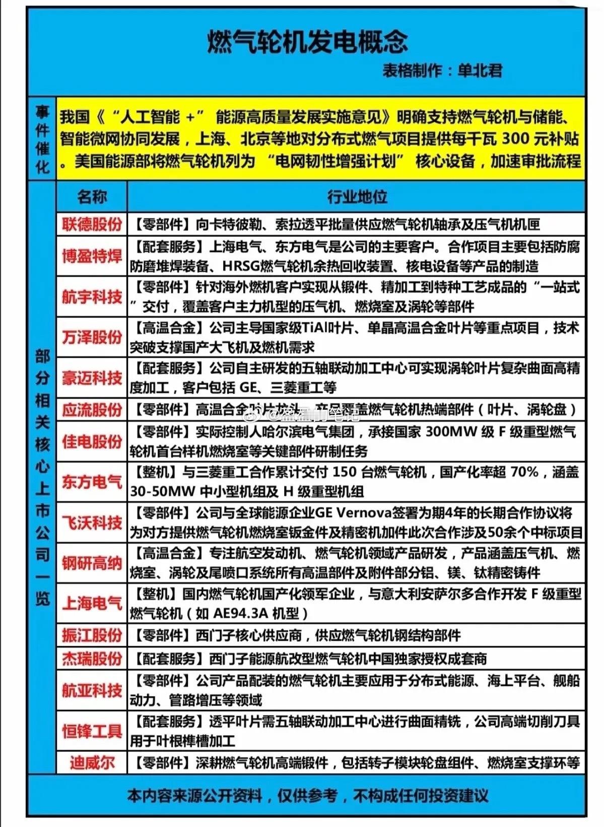 燃气轮机发电概念股梳理分析!国内政策明确支持燃气轮机与储能、智能微网协同发展,