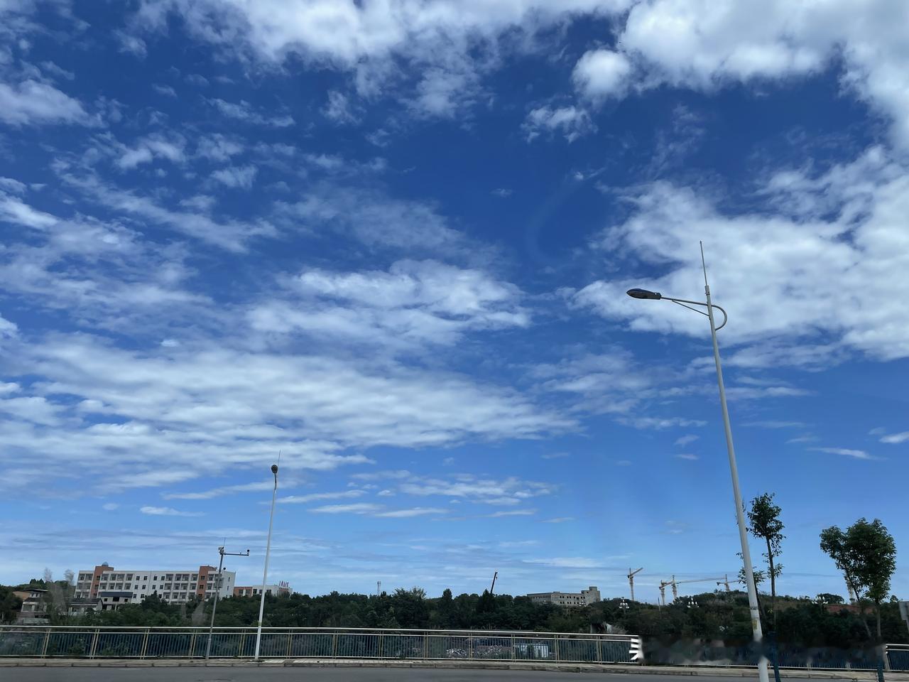 《云与蓝天的诗行》 城市的喧嚣在此刻静止,只因这片澄澈的蓝天与绵柔的白云。 蓝天如被最细腻的蓝墨晕染,纯粹得让人心醉。白云似棉絮、如轻纱,肆意铺展又悄然变幻,每一朵都是天空即兴的创作。它们在天际线勾勒出灵动的轮廓,与远处的建筑、绿树相映成趣,连路灯都似在仰望这自然的杰作。 这一方天地,滤去了所有浮躁,只留满心的澄澈。仿佛时间也放缓了脚步,让人甘愿沉醉在这蓝与白编织的诗意里,任思绪随云絮自在飘荡。