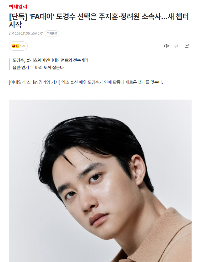 专辑、演技两手抓并进行活跃活动的都暻秀找到了可以同时兼顾演员和歌手活动的所属社。