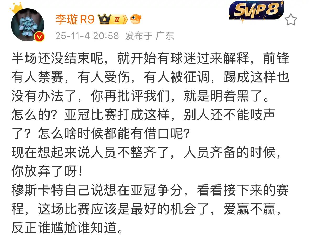 李璇不就是明着黑啊,输球可以骂,缺人也是事实